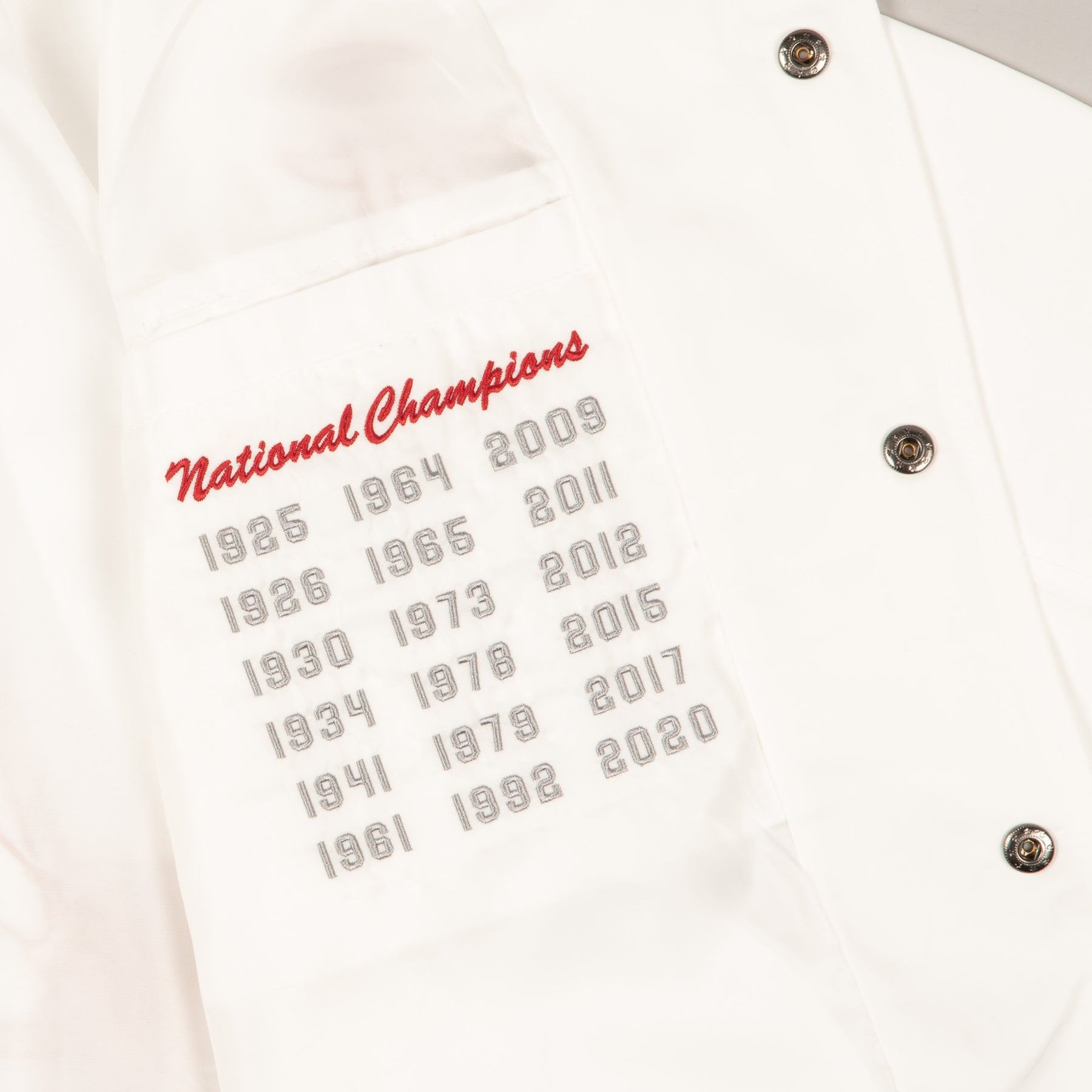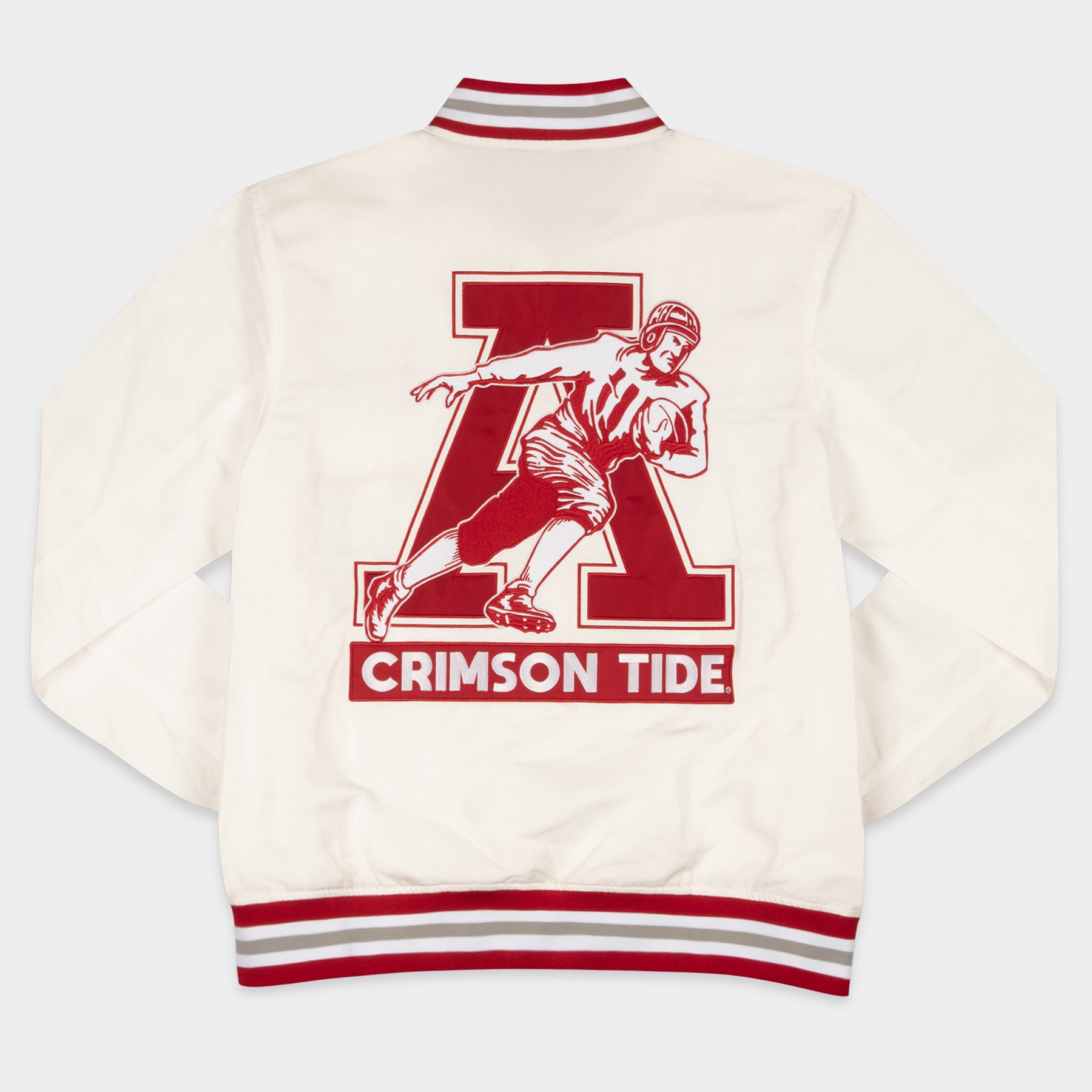 This Alabama jacket is rich with history, and offers a bright contrast piece to Bama's typically deep, rich crimson. The logo on the back is a favorite of ours, nodding to the earliest days of Crimson Tide football in 1892. In the inner lining of the jacket, you'll find the Tide's 18 national titles listed, as a constant reminder of Bama's football tradition.