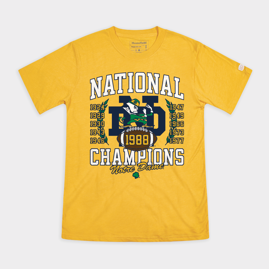 • Two exclusive Fighting Irish football designs you won't find on our site, including a shirt showcasing their long national championship pedigree