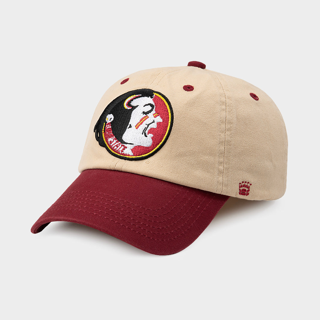 This version of the Florida State Seminoles logo debuted in the 1970s. The school still uses a similar variation today, but we went old school to match the vintage, well-loved feel of our adjustable dad hats. Brought to you in partnership with College Vault.