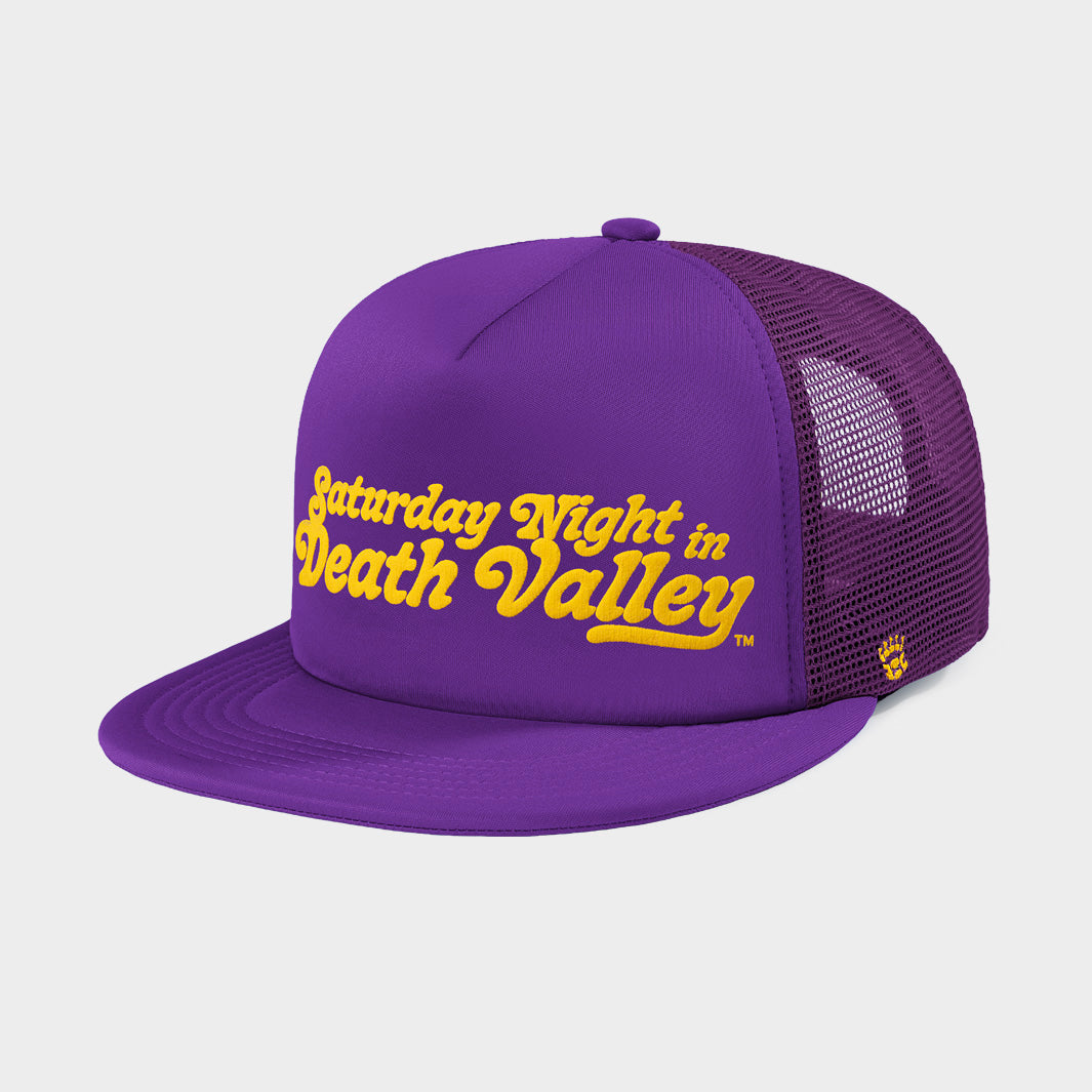 It is Saturday Night in Death Valley! Set on our fan-favorite trucker style, inspired by high-crown, bold hats of yore, this LSU hat literally makes a statement. The dimensional puff ink adds to this trucker cap's eye-catching design -- it practically screams Tigers, if you ask us.