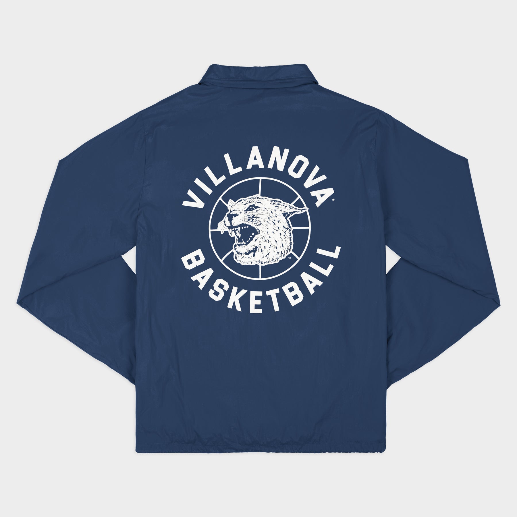 Our much-loved Coaches Jacket makes its courtside debut. This lightweight, collared Villanova Wildcats jacket features a timeless Villanova Athletic Department chest print, a beloved Wildcats basketball logo, and precise, chainstitch embroidery for a vintage touch.