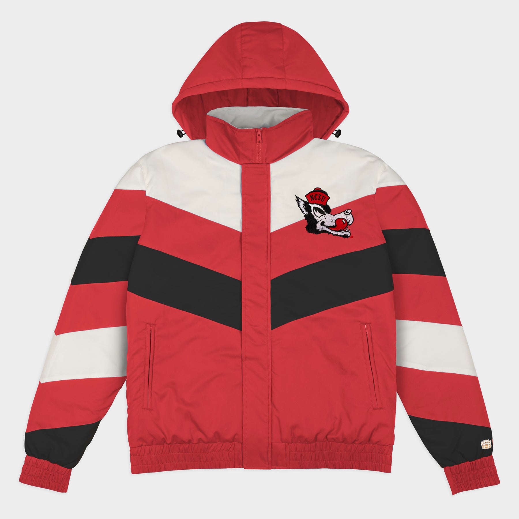Change the winter jacket game with the Minnesota Tech Gamebreaker Jacket. Inspired by the bold, maximal sportstyle jackets of the 1990s, each jacket is designed with a high neck and removable hood to withstand whatever elements the day throws at you. The chevron stripes and classic, vintage logos on the chest and back paint the quintessential game day fashion picture.
