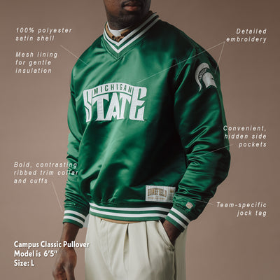 With an arched "Kentucky" wordmark and the roaring Wildcat logo UK fans know and love, our Kentucky Campus Classic Pullover redefines nostalgia. We carefully recreated windbreaker-style satin pullovers from the late '80s and '90s -- you know, the same kind you stole out of your parents' closets to wear to the game -- to create a new, retro-inspired pullover that'll get scooped up out of your closet someday.