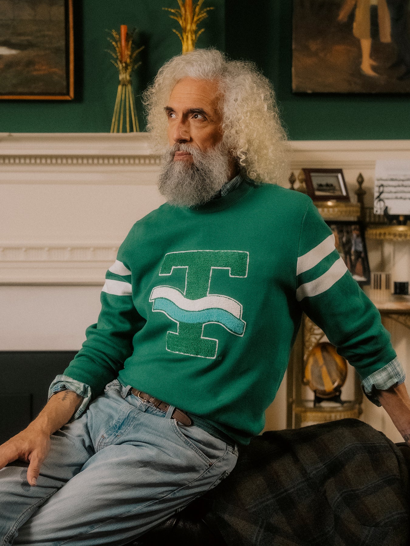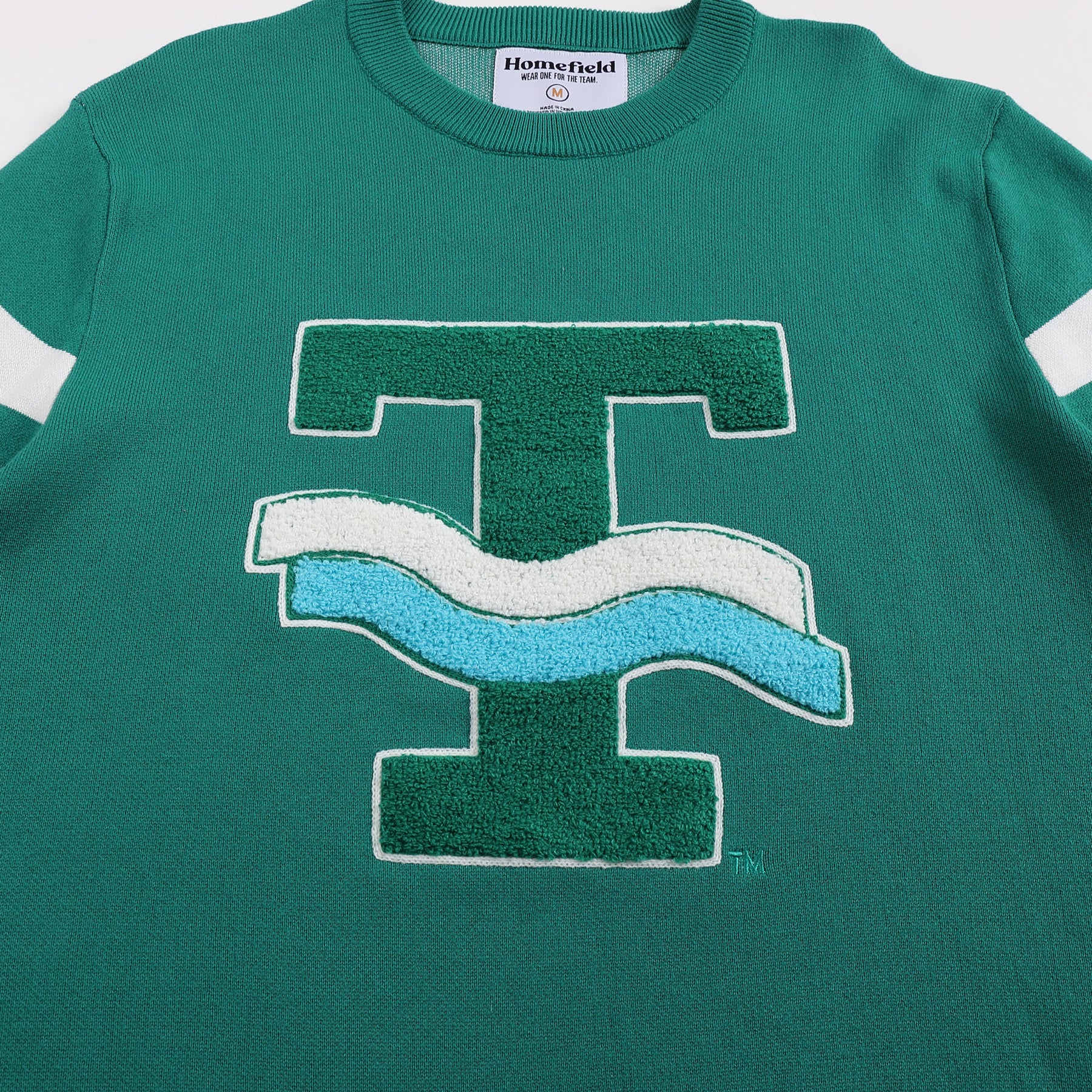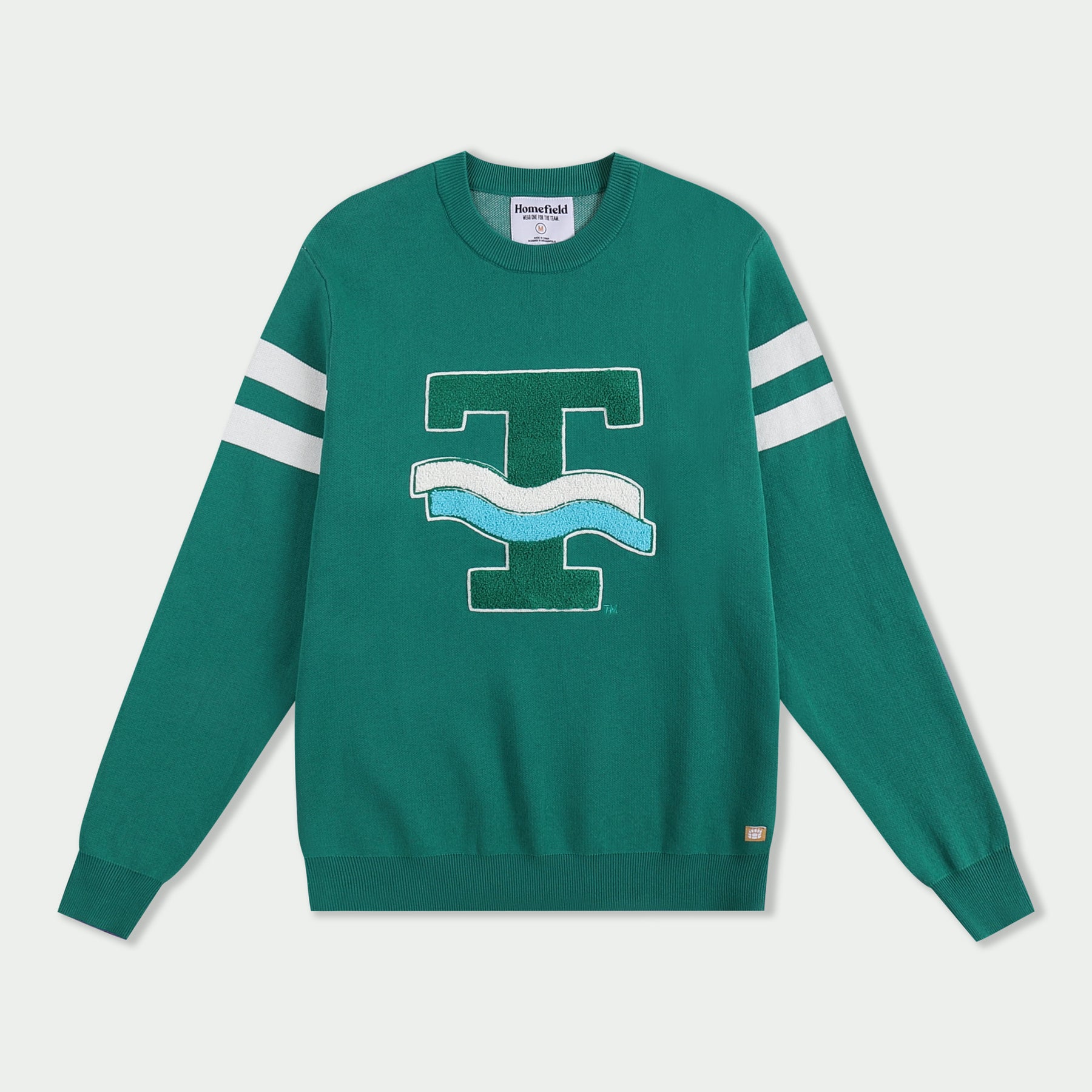 In 1986, Tulane changed its primary athletics mark from the Angry Wave to the Block "T" with two waves across it. The logo remained its primary mark until 1998. We re-envisioned the logo with a vintage touch--specifically, as a chenille logo set on a cozy knit sweater.