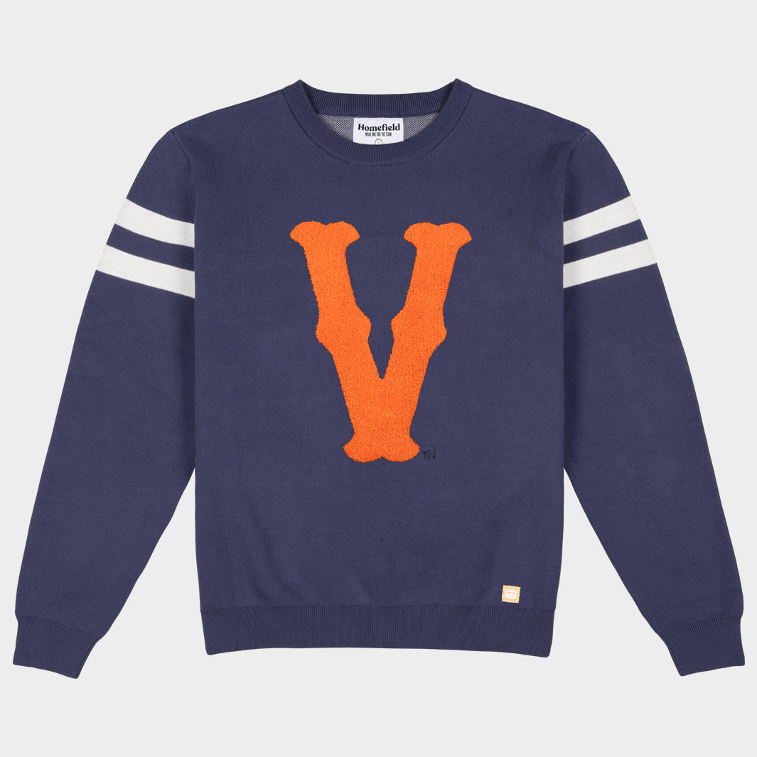 Much of Virginia baseball’s success is recent, with head coach Brian O’Connor at the helm for over two decades. We dug into the team's history, though, and found this “V” logo on their caps in 1973, a year after their first-ever NCAA tournament appearance and conference regular season championship. Now, wear the logo as a statement chenille patch, set on a luxe knit sweater.