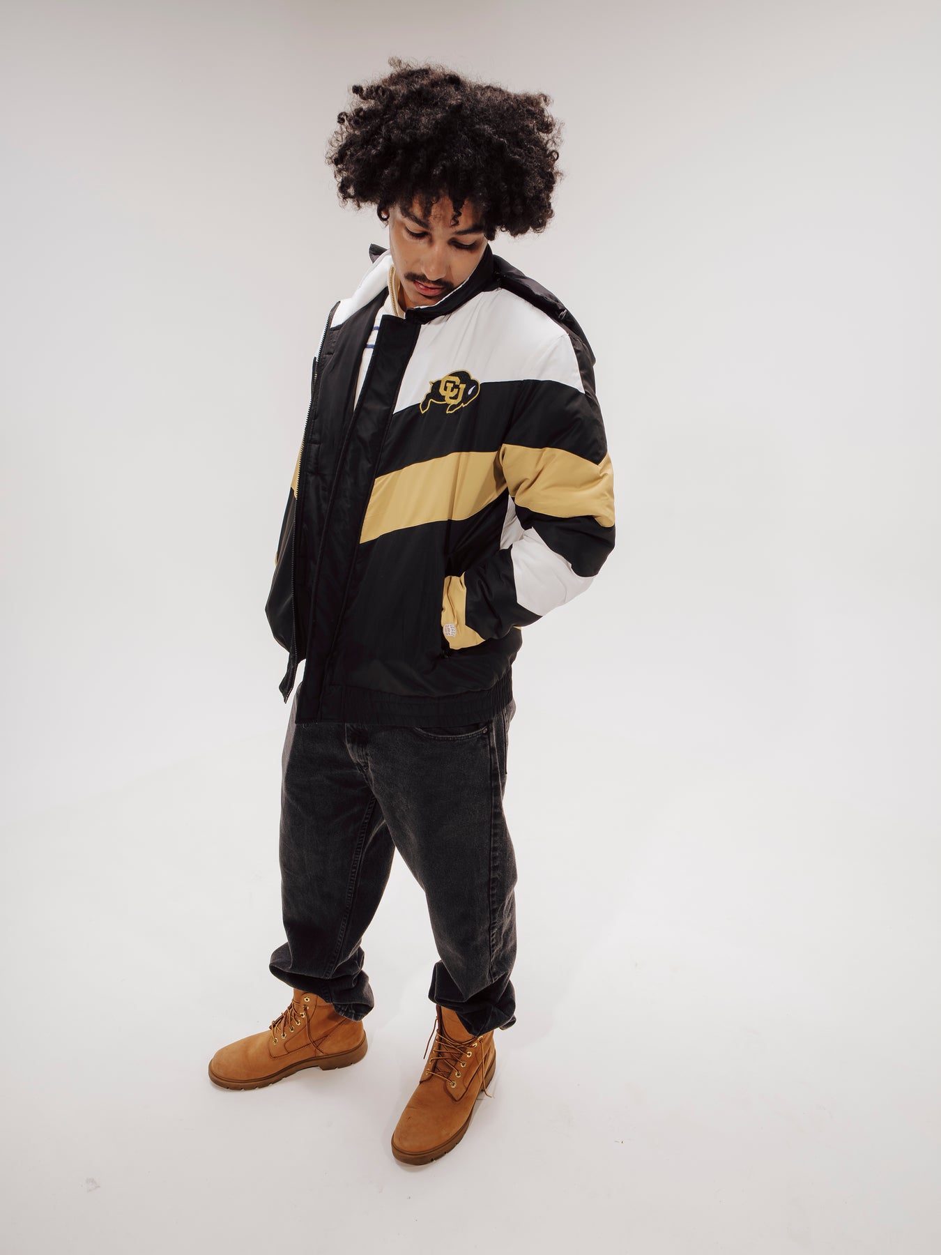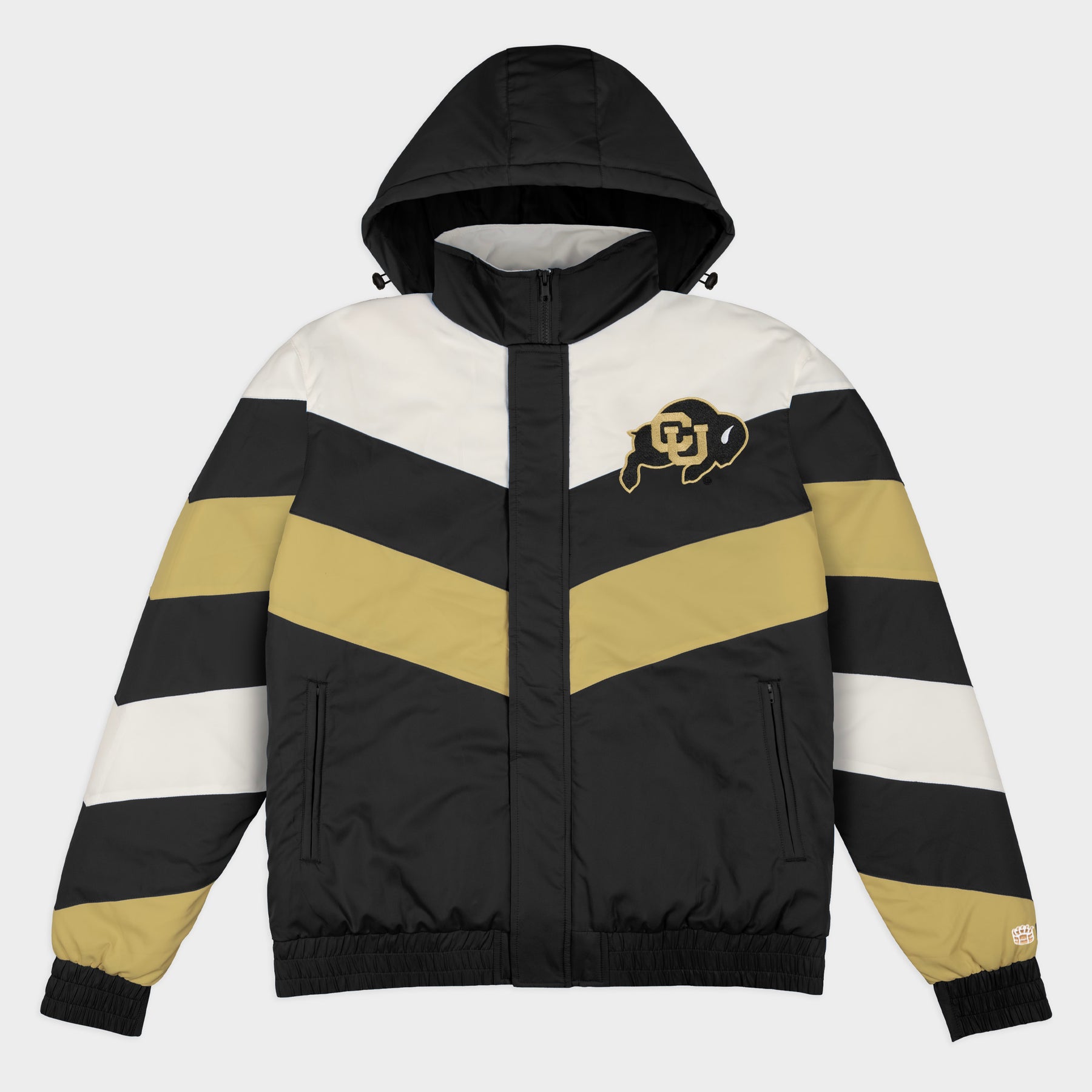 Change the winter jacket game with the Colorado Gamebreaker Jacket. Inspired by the bold, maximal sportstyle jackets of the 1990s, each jacket is designed with a high neck and removable hood to withstand whatever elements the day throws at you. The chevron stripes and classic, vintage logos on the chest and back paint the quintessential game day fashion picture.