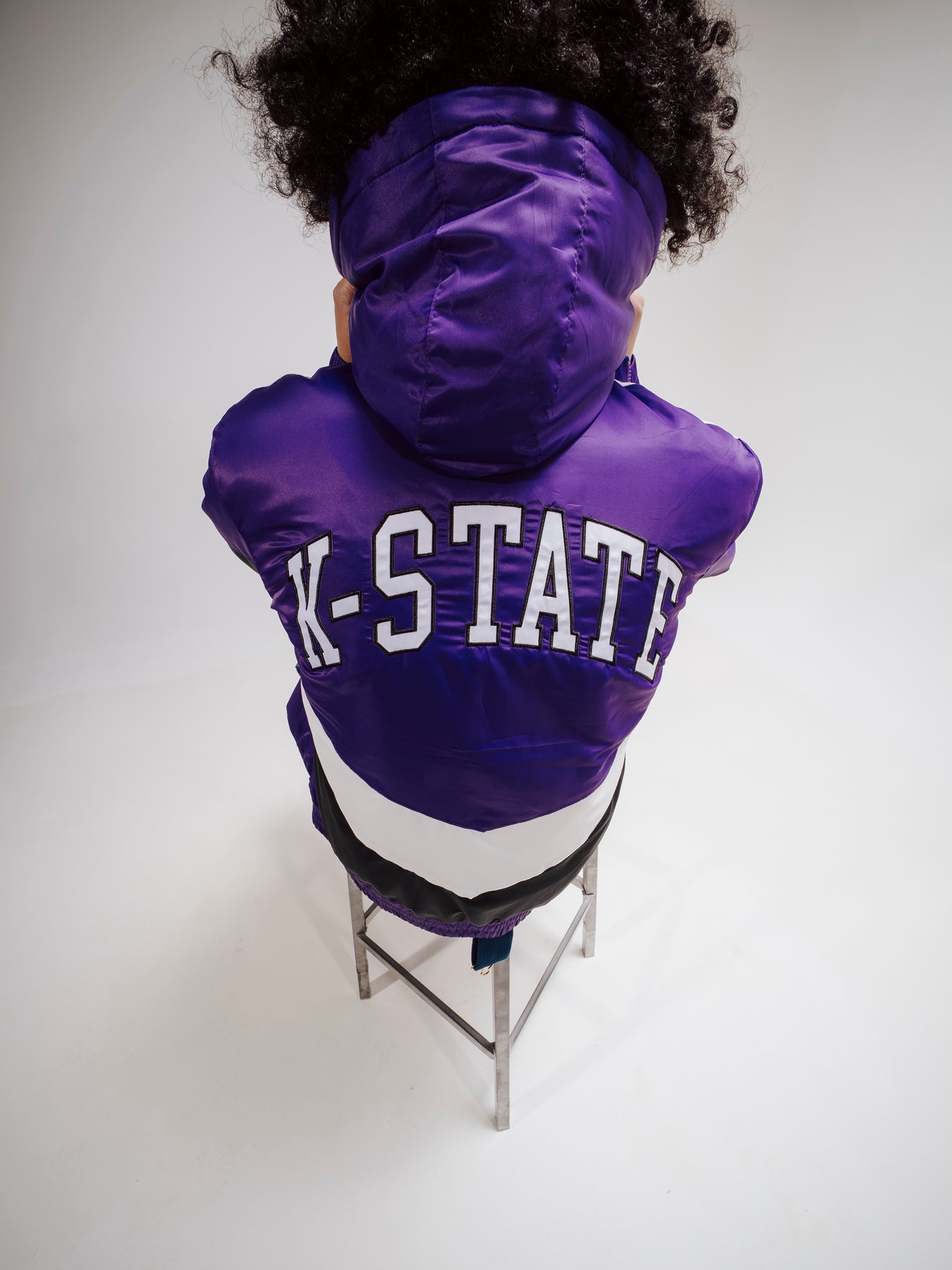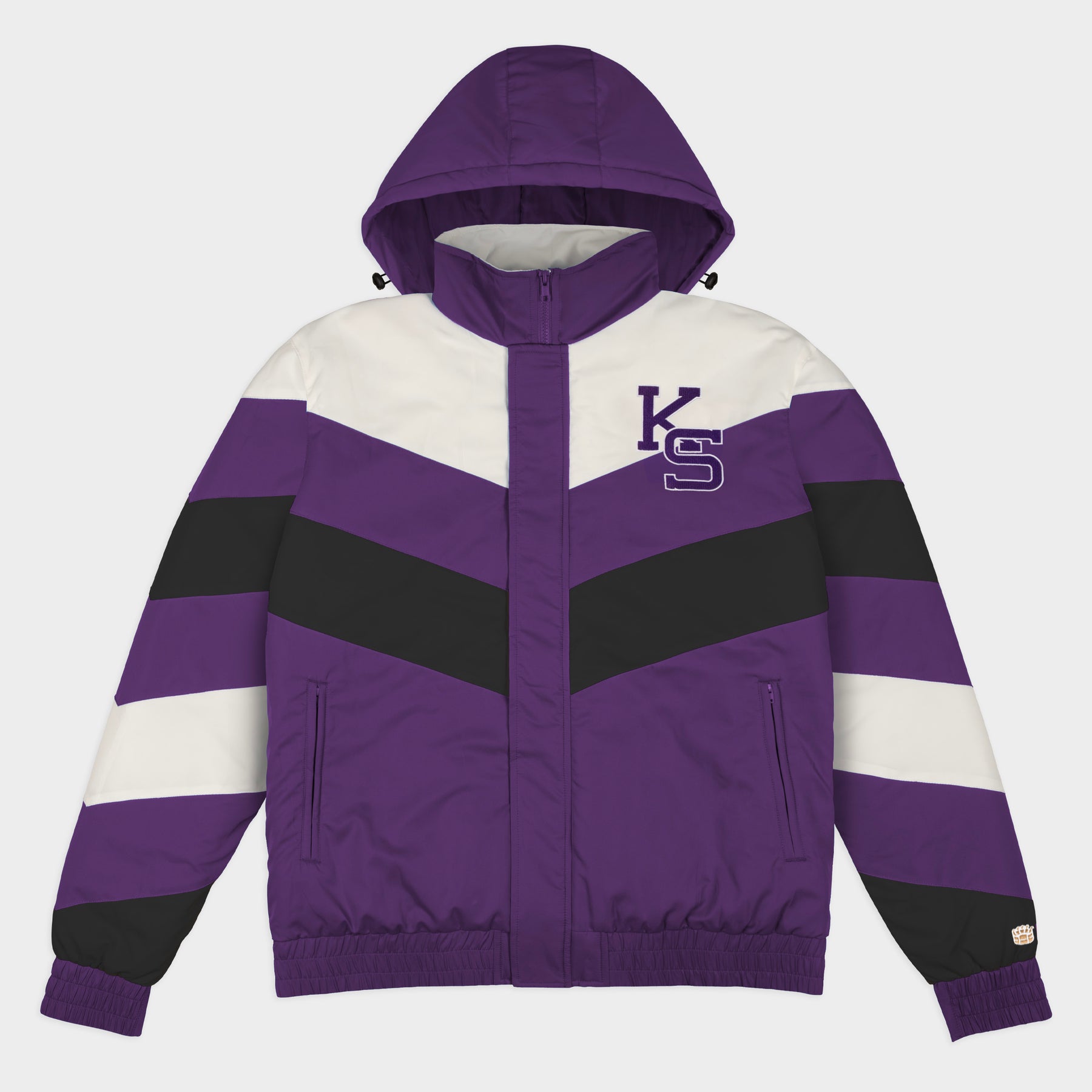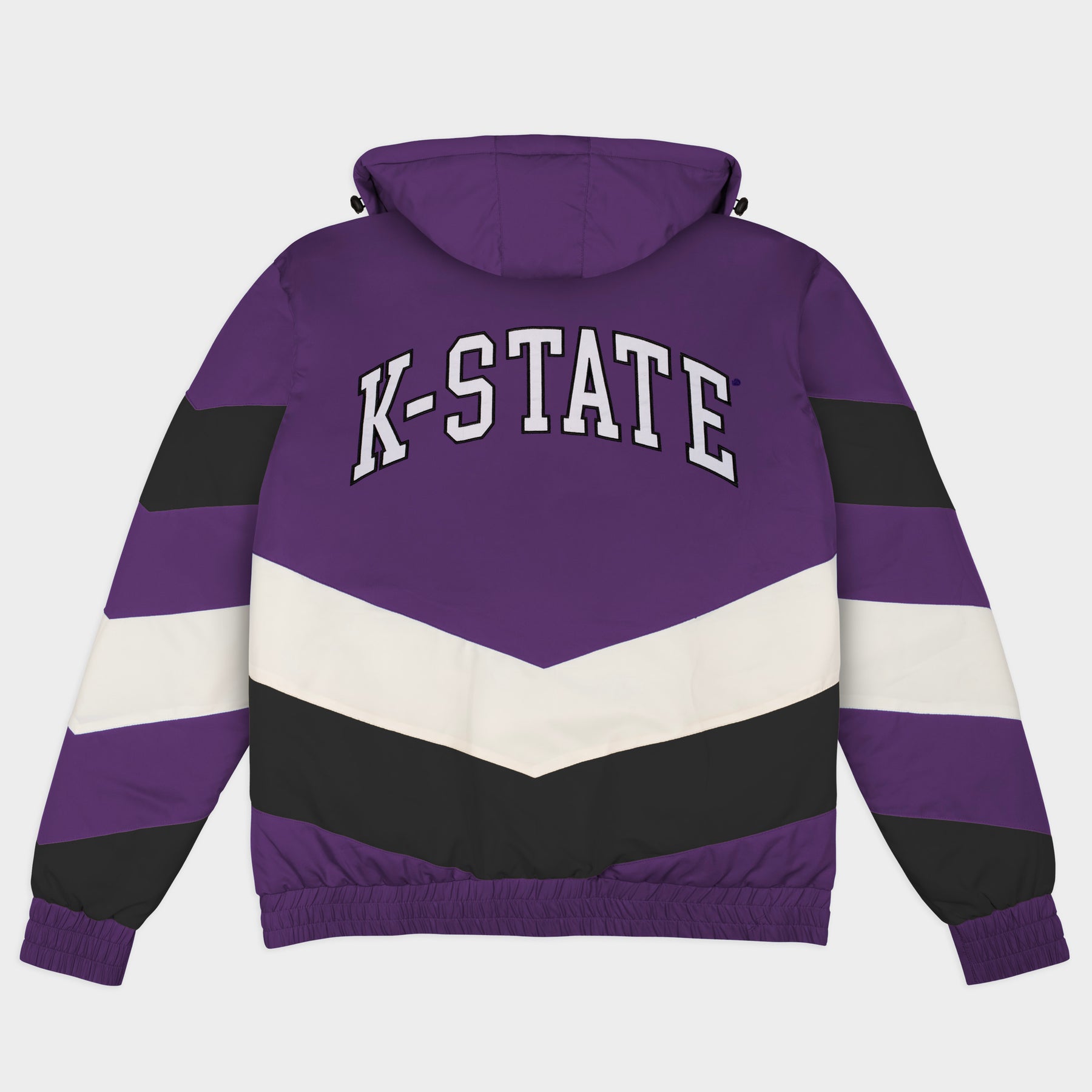 Change the winter jacket game with the K-State Gamebreaker Jacket. Inspired by the bold, maximal sportstyle jackets of the 1990s, each jacket is designed with a high neck and removable hood to withstand whatever elements the day throws at you. The chevron stripes and classic, vintage logos on the chest and back paint the quintessential game day fashion picture.