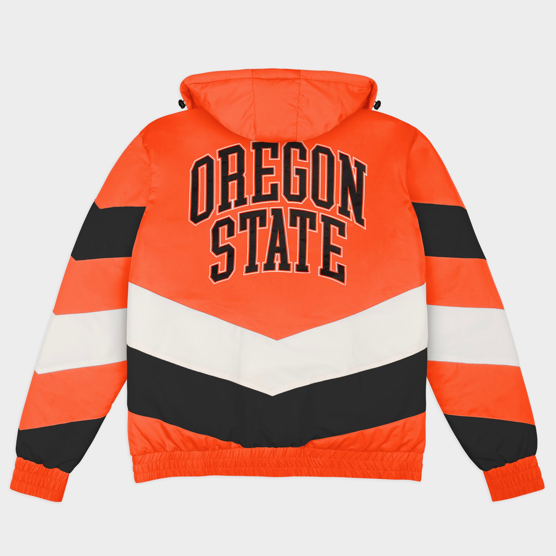 Change the winter jacket game with the Oregon State Gamebreaker Jacket. Inspired by the bold, maximal sportstyle jackets of the 1990s, each jacket is designed with a high neck and removable hood to withstand whatever elements the day throws at you. The chevron stripes and classic, vintage logos on the chest and back paint the quintessential game day fashion picture.