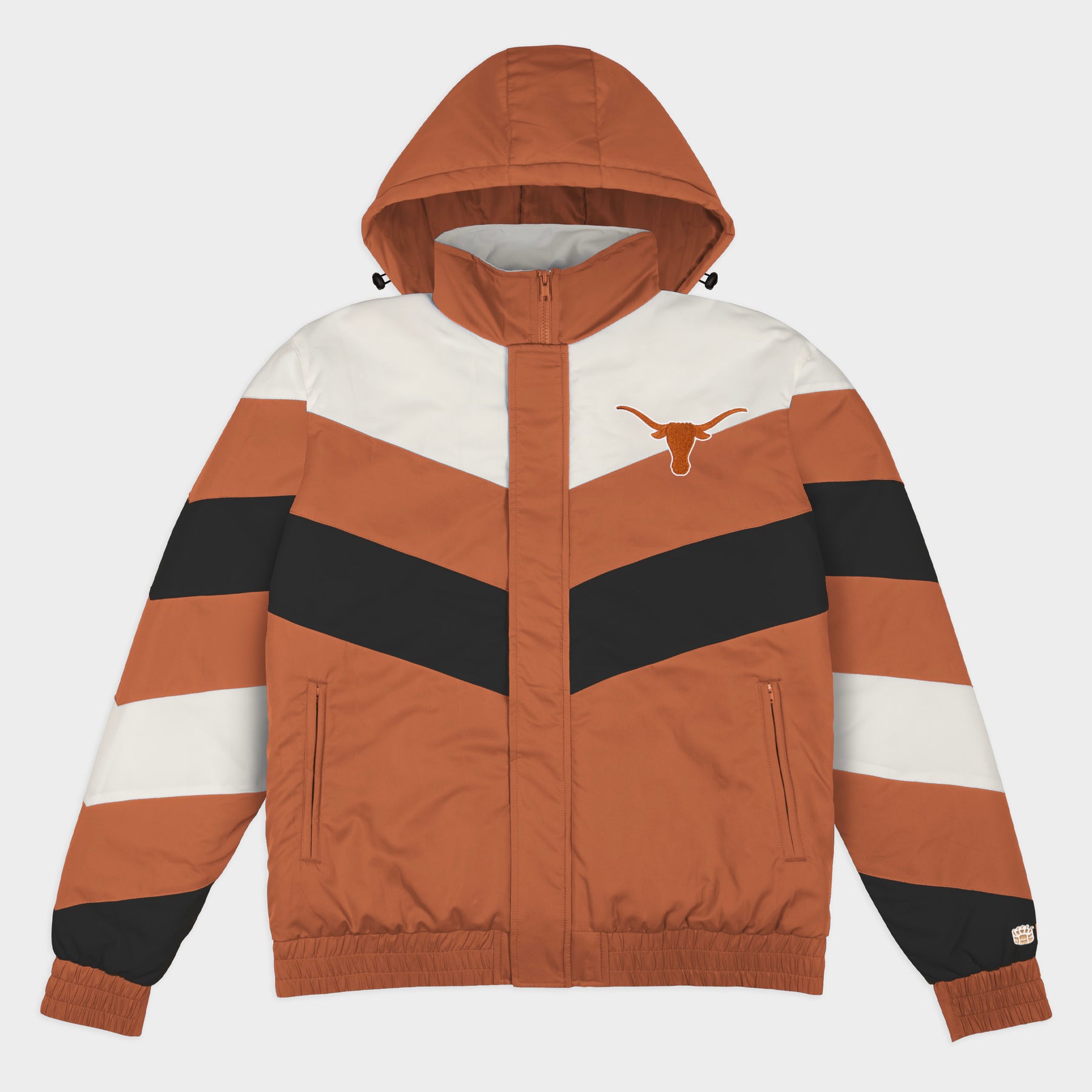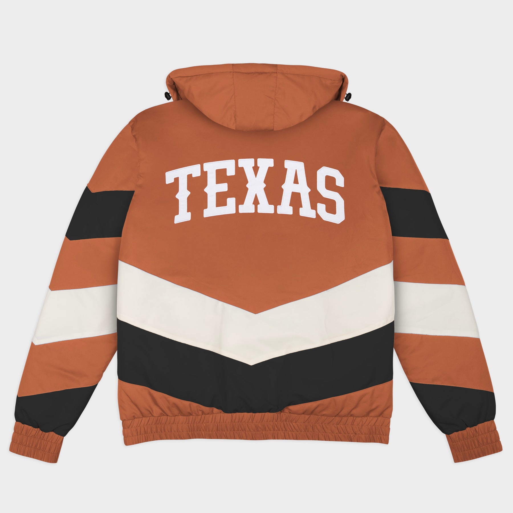 Change the winter jacket game with the Texas Gamebreaker Jacket. Inspired by the bold, maximal sportstyle jackets of the 1990s, each jacket is designed with a high neck and removable hood to withstand whatever elements the day throws at you. The chevron stripes and classic, vintage logos on the chest and back paint the quintessential game day fashion picture.