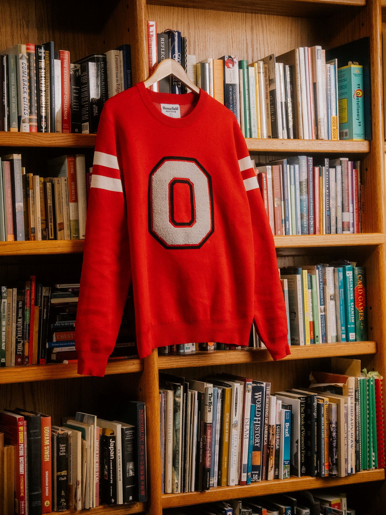 We traveled back in time to recreate Ohio State's classic, grey block "O" as a chenille patch, set on our premium knit sweater. It reminds us of the earliest days of athletic uniforms, when teams wore actual sweaters out on the field.