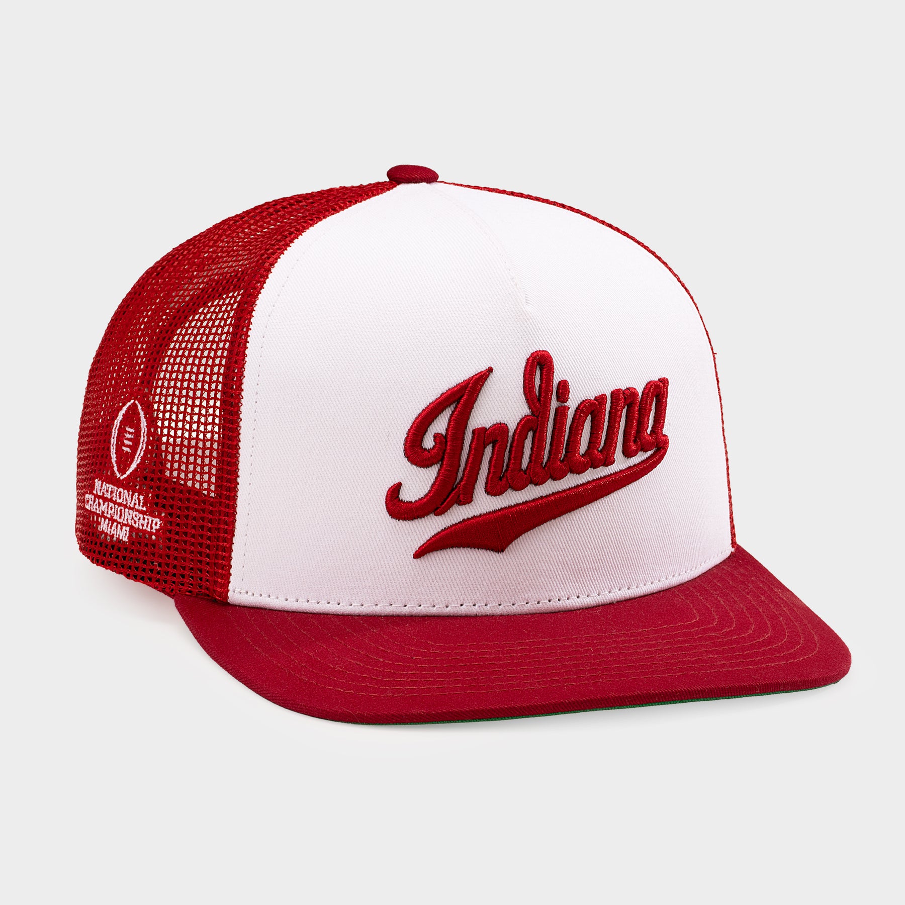Introducing your Never Daunted National Champions. With this premium trucker hat, you can showcase your love of the undefeated champs, the Indiana Hoosiers. Featuring the beloved script "Indiana" and the College Football Playoff logo, this limited-edition keepsake is our loving tribute to the school that started it all.