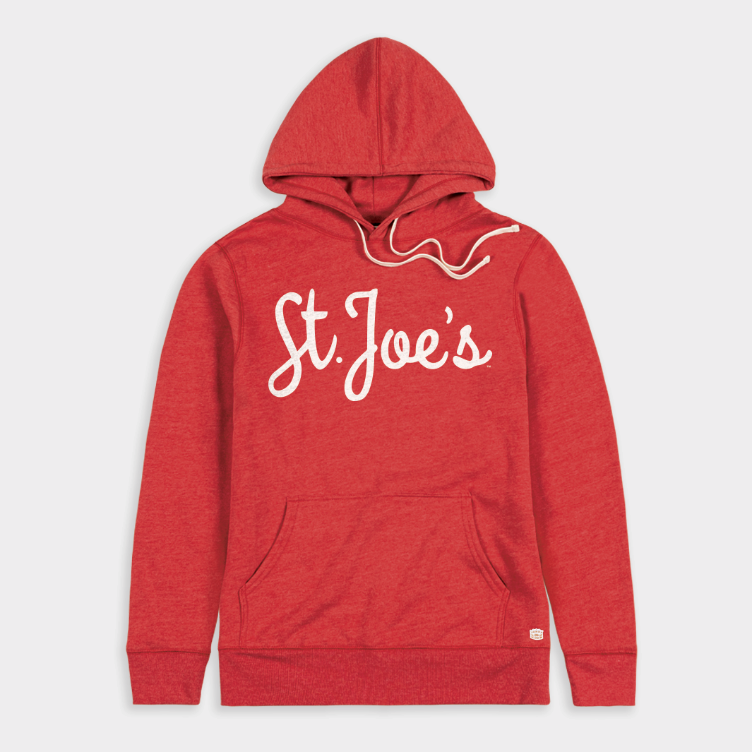 This retro St. Joe’s Hawks script has made its rounds recently as a resurrected vintage favorite. Saint Joseph’s 1982 logo features a script in a similar style, worn on The Hawk’s grey sweater.