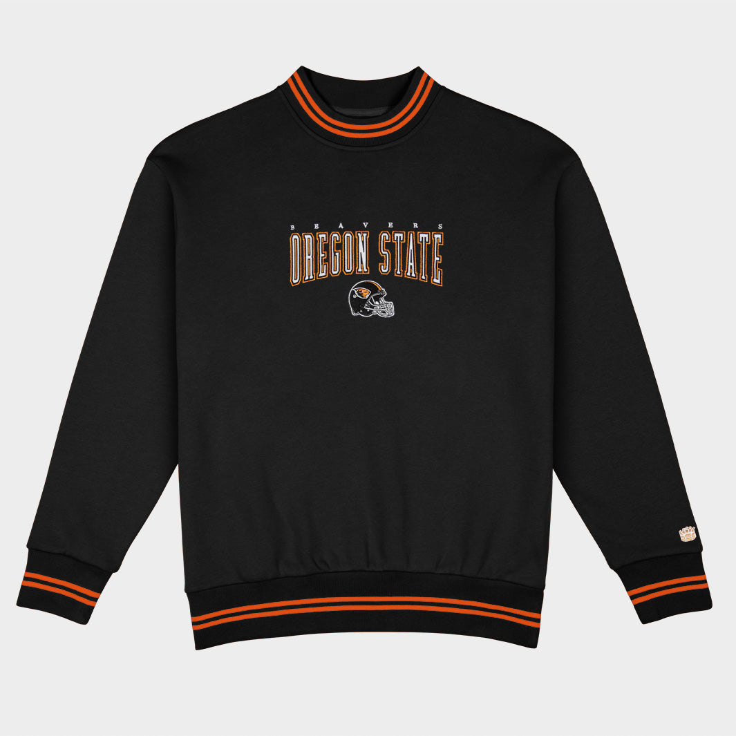 For this Oregon State Beavers tri-stripe crewneck, we took inspiration from the college football grails in our loved ones' closets. That sturdy, finely detailed sweatshirt with distinctive football flair? You can finally have one of your own. This crewneck features retro, striped ribbing around the cuffs and collar, plus impeccable embroidery, to offer you the quintessential gameday crew.