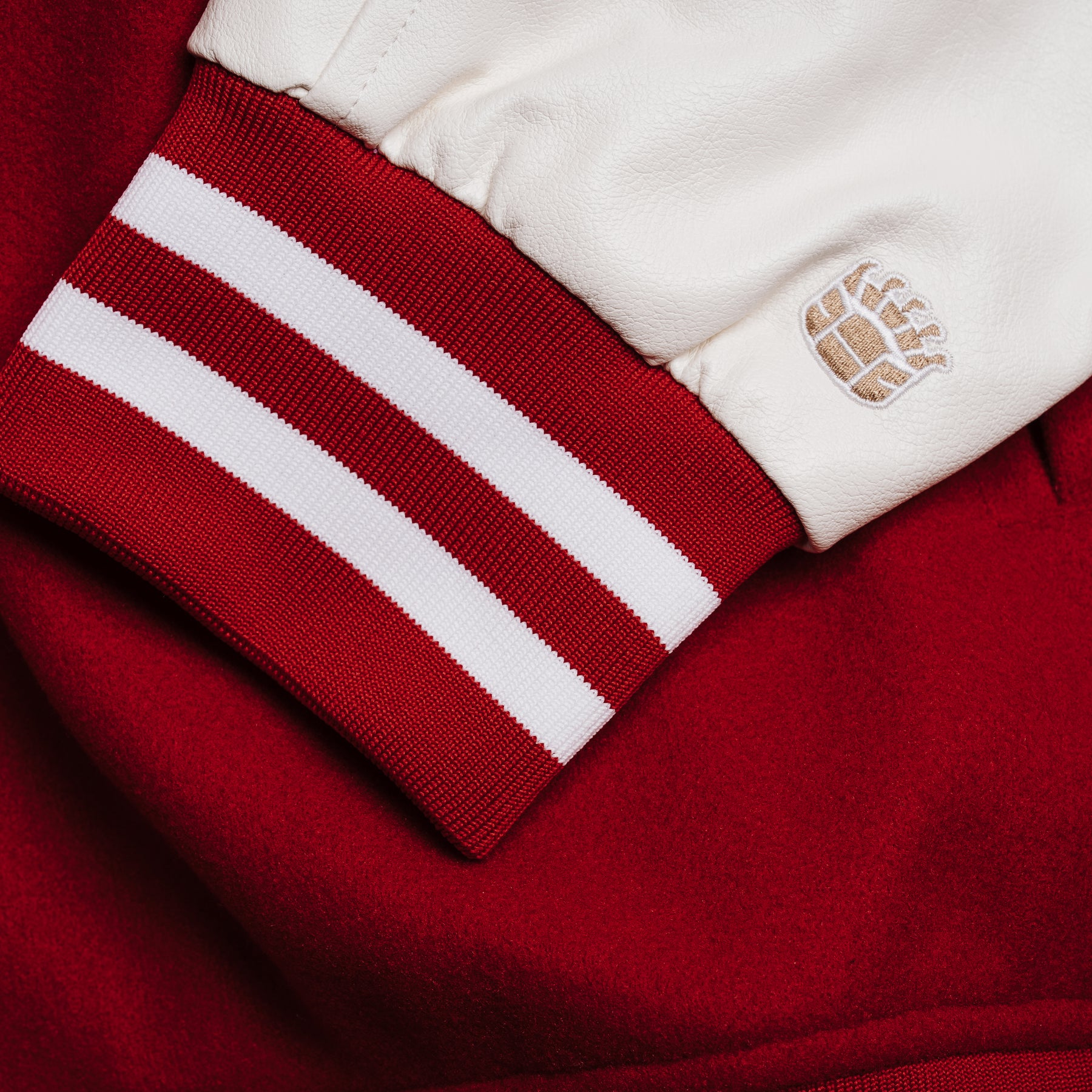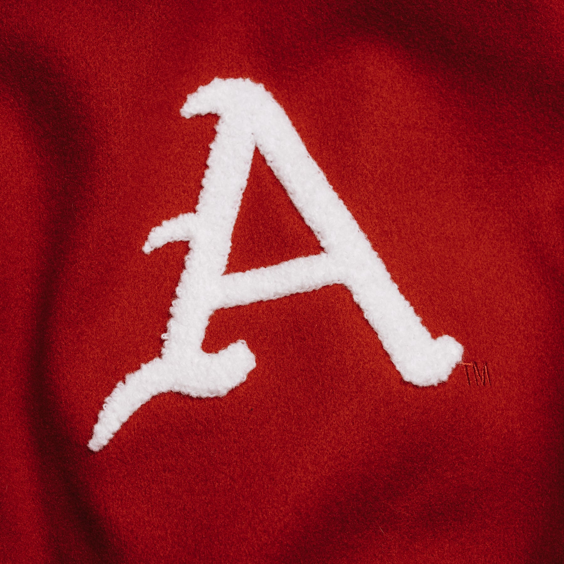 Inspired by team-issue varsity letter jackets and the resurgence of preppy-yet-approachable fall style, our Arkansas Varsity Jacket embodies timeless school spirit. With a chenille block "A" to add dimension, our 100% vegan jacket is an instant eye-catcher.