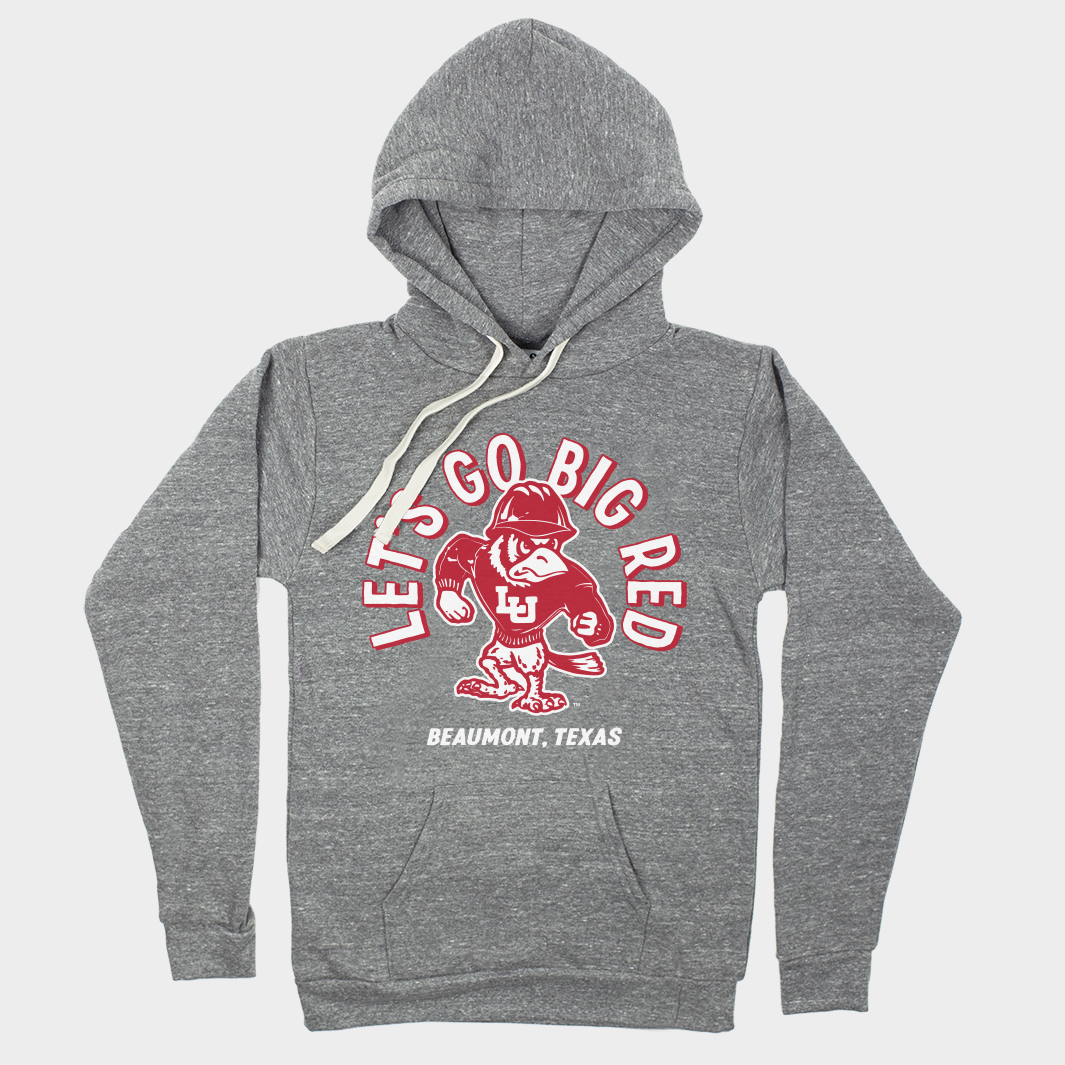 Stand out from the crowd in a comfy triblend hoodie featuring Lamar University's mascot, Big Red. This version of the cardinal was taken from the 1980s, and it looks like you do not want to make him angry.