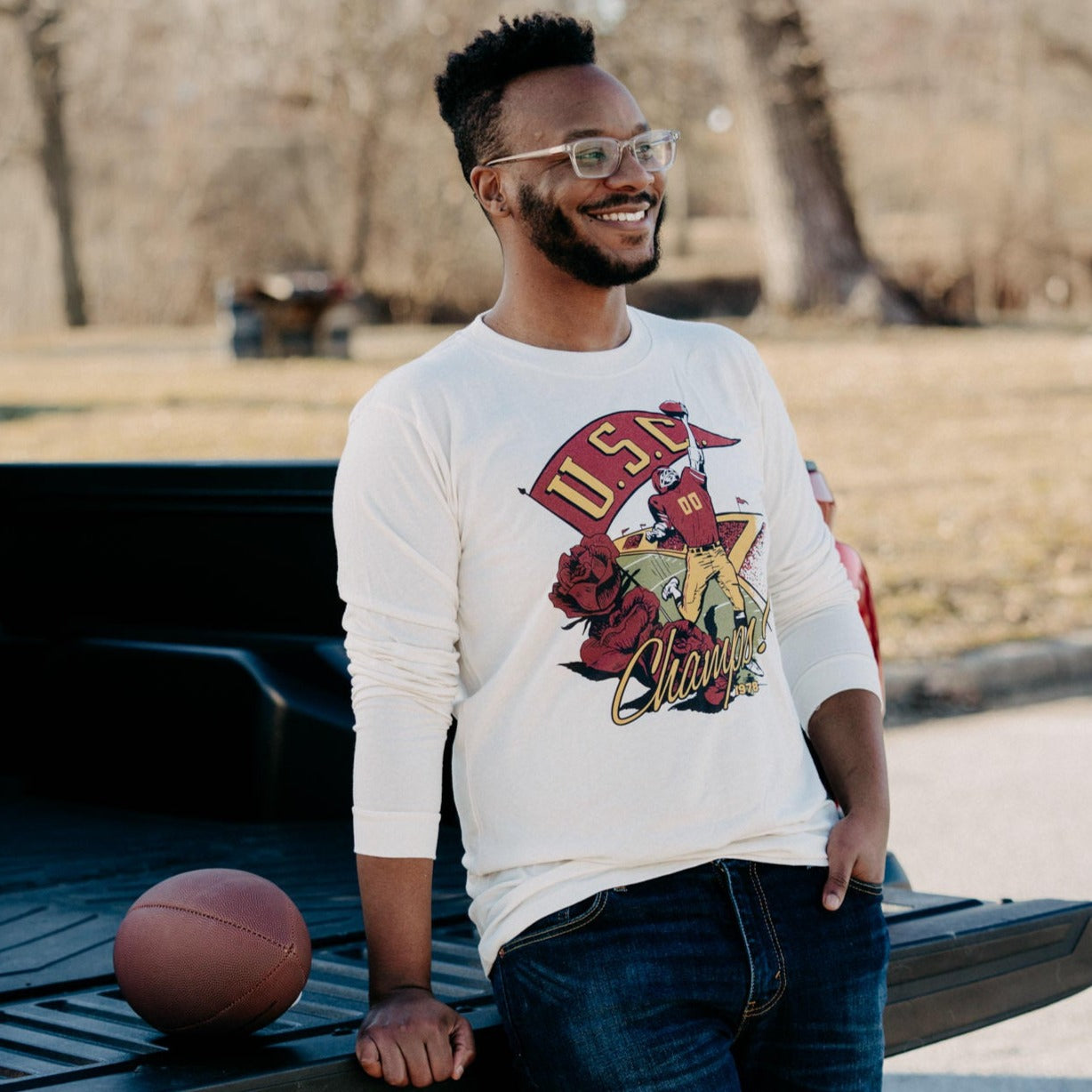 We combined some of our favorite things for this design. We recreated a vintage USC illustration and combined it with roses that are almost synonymous with the Trojans. This particular design honors SC’s 1978 win over Michigan, which helped them cement their ninth national championship.