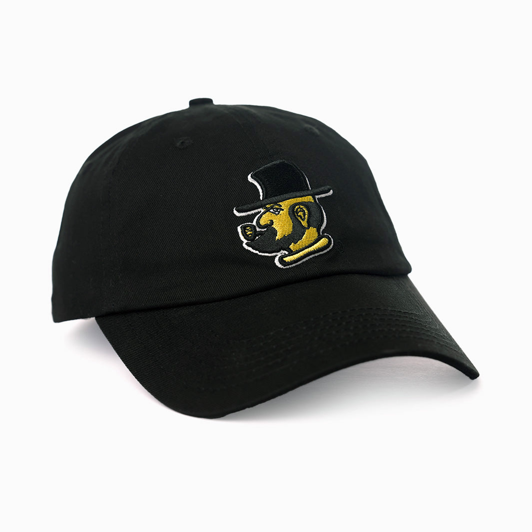 Appalachian State reintroduced the fan-favorite “Victory Yosef” logo featured here to fans in 2012. It had been decades since the football team wore him on their helmets throughout the 1970's, most famously for their underdog victories against Wake Forest and South Carolina in 1975. We don't sell football helmets, so this dad hat will have to do.
