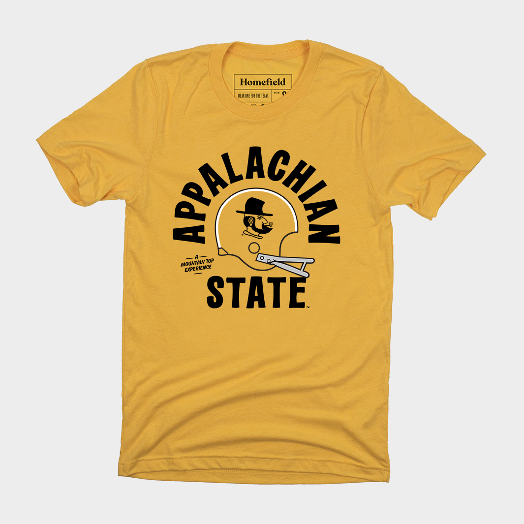 Appalachian State reintroduced the fan-favorite “Victory Yosef” logo featured here to fans in 2012. It had been decades since the football team wore him on their helmets throughout the 1970's, most famously for their underdog victories against Wake Forest and South Carolina in 1975.