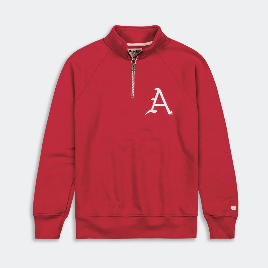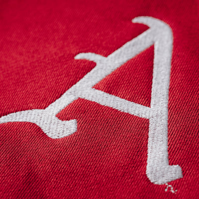 This gothic “A” features proudly on the Arkansas baseball team’s hats. The celebrated Diamond Hogs know what it means to put on a show – the Razorbacks were the first team in the nation to have an average game attendance over 8,000 throughout a season. All those fans really get into it, too – when the Hogs load the bases, fans wear hats shaped like beer mugs (a tradition that first started as a joke among friends, and caught on with the rest of the crowd).