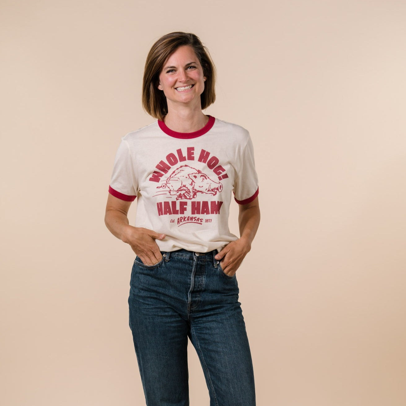 Arkansas "Whole Hog! Half Ham!" Ringer Tee