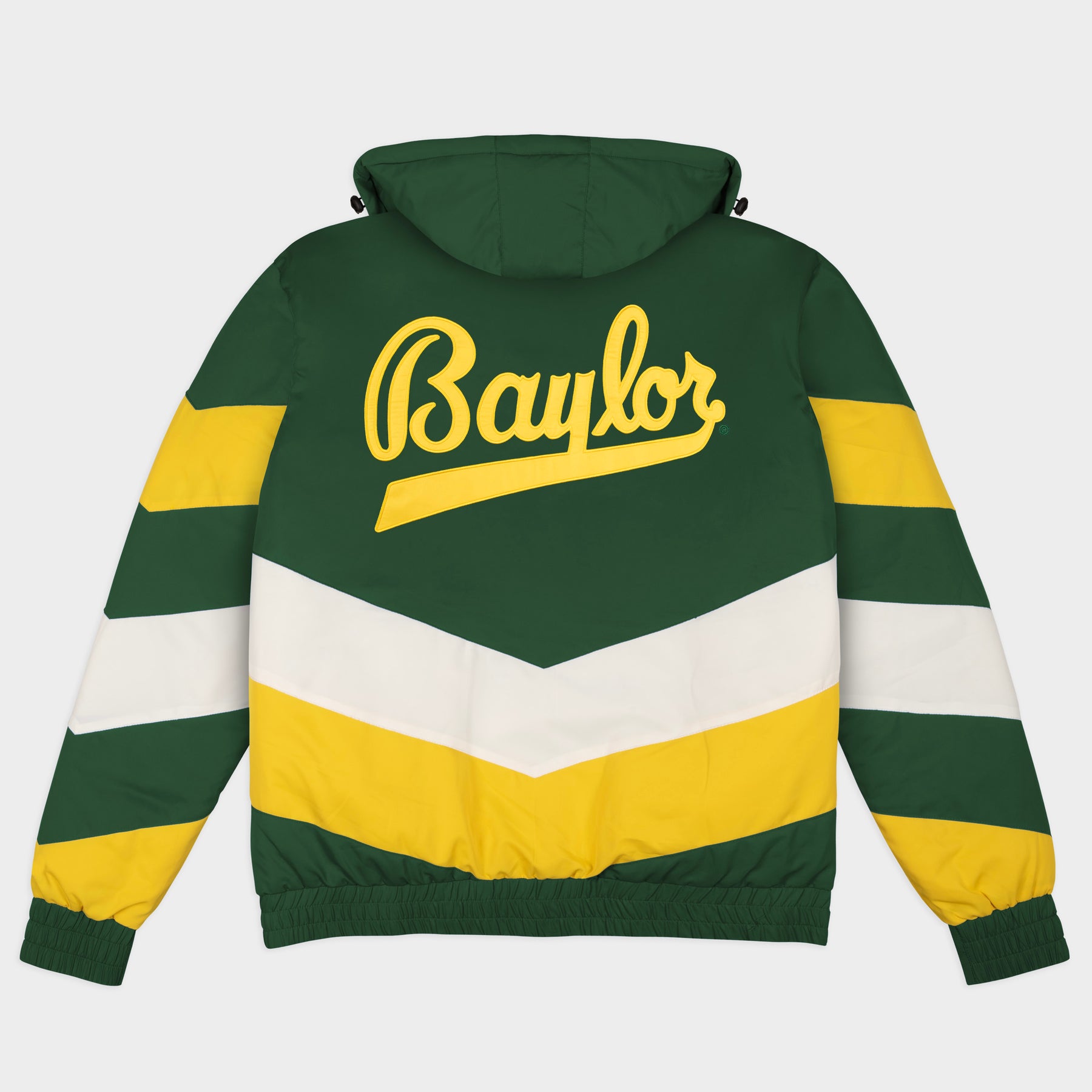 Change the winter jacket game with the Baylor Gamebreaker Jacket. Inspired by the bold, maximal sportstyle jackets of the 1990s, each jacket is designed with a high neck and removable hood to withstand whatever elements the day throws at you. The chevron stripes and classic, vintage logos on the chest and back paint the quintessential game day fashion picture.