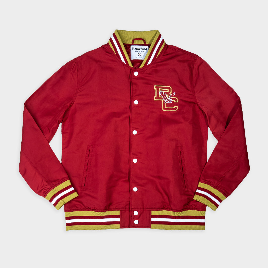 This vintage Boston College logo was created in 1962, and served the Eagles well for over four decades. The classic mark was also the inspiration for the modern BC logo used today (and the inspiration for our vintage bomber jacket, which also features a timeless, arched "Boston College" mark on the back).