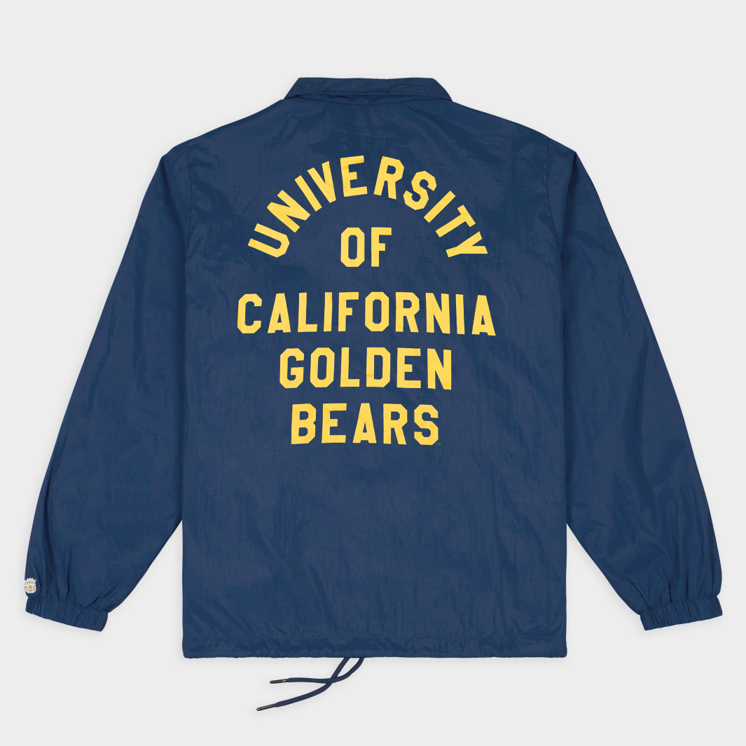 Through the late 1960s and '70s, football coaching staffs transitioned their sideline wardrobes from full suits and ties to light, workmen-style jackets; these coaches jackets were predecessors to the more spirited, uniformly branded looks we see on the sidelines today. Our take on a Cal Golden Bears coaches jacket matches era-appropriate typefaces and logos with the structured collar and boxy fit of a vintage jacket. Made with durable-yet-lightweight nylon, and high-quality snap plackets and drawcords, it's the perfect outer layer for a brisk Saturday evening game.