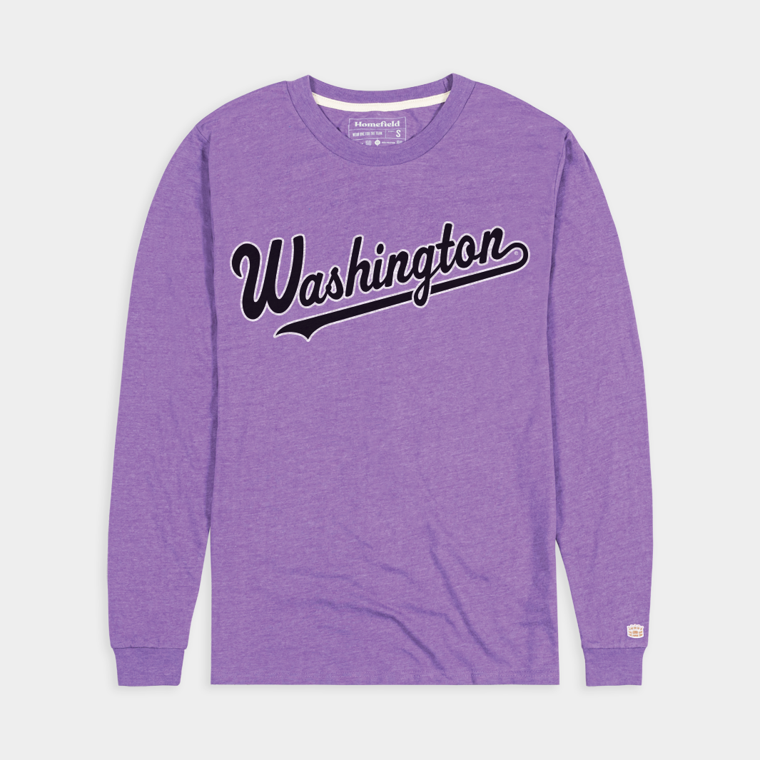 You know us -- we love a vintage collegiate script. This Washington script is a classic look found on Huskies baseball uniforms.