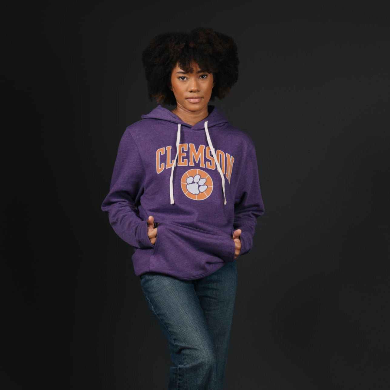Inspired by retro basketball jerseys throughout Clemson’s history, we wanted to honor the Tigers’ hoops squads with this classic collegiate design. At the heart of Littlejohn Coliseum, you’ll also see the iconic Tiger Paw – always facing 1 o’clock, and with its unique hook in the footpad. Products are mocked up on a size S. Graphics may appear smaller on larger sizes. CL-HOOD-004-XS