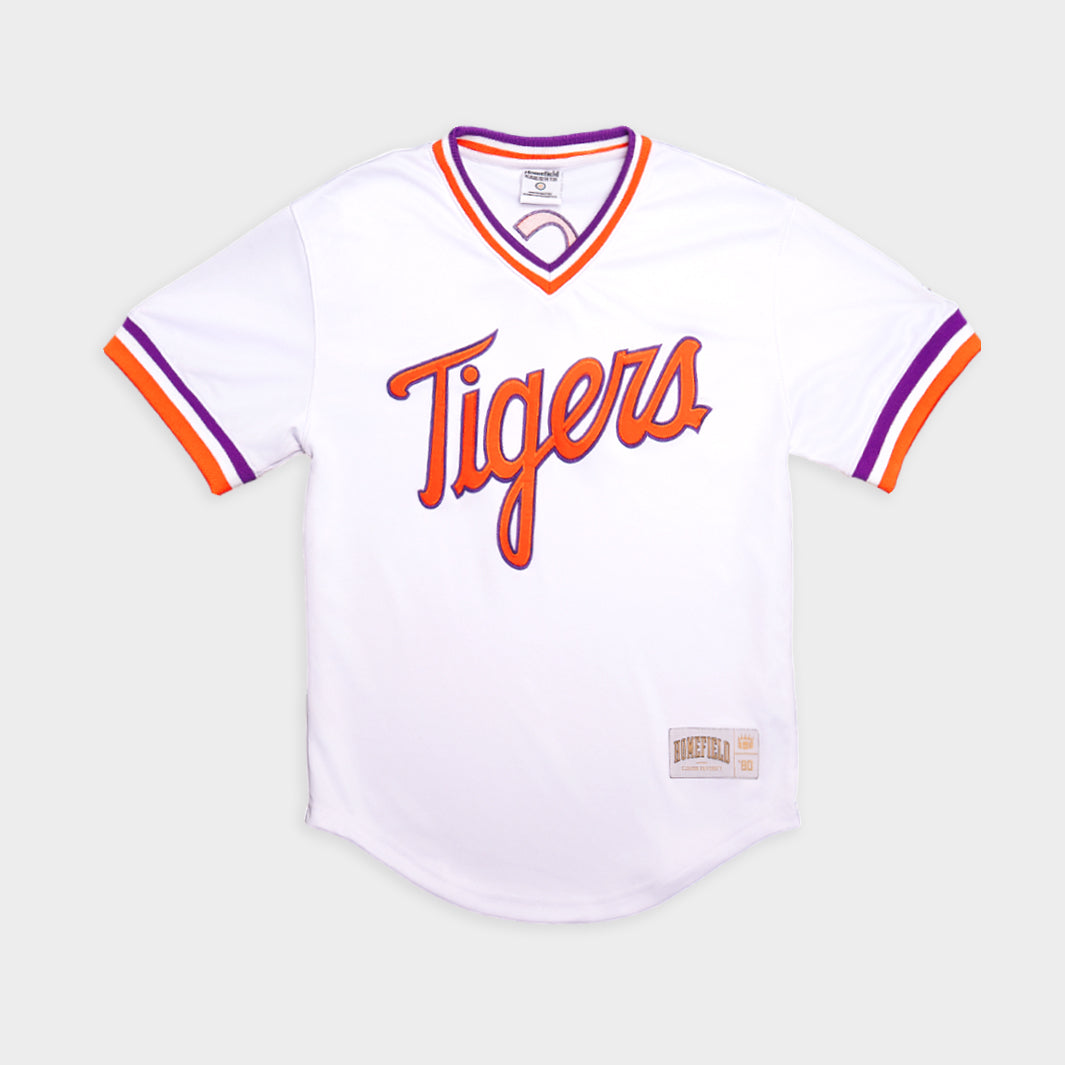 As we dug through school archives to find the best vintage Clemson looks to inspire our baseball pullover, Tigers baseball’s 1980 uniforms checked every box for us. The uniform features a unique script and bright accents, and the team saw success while they wore it.