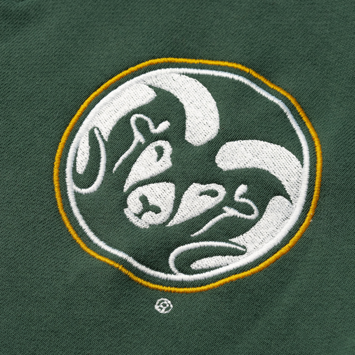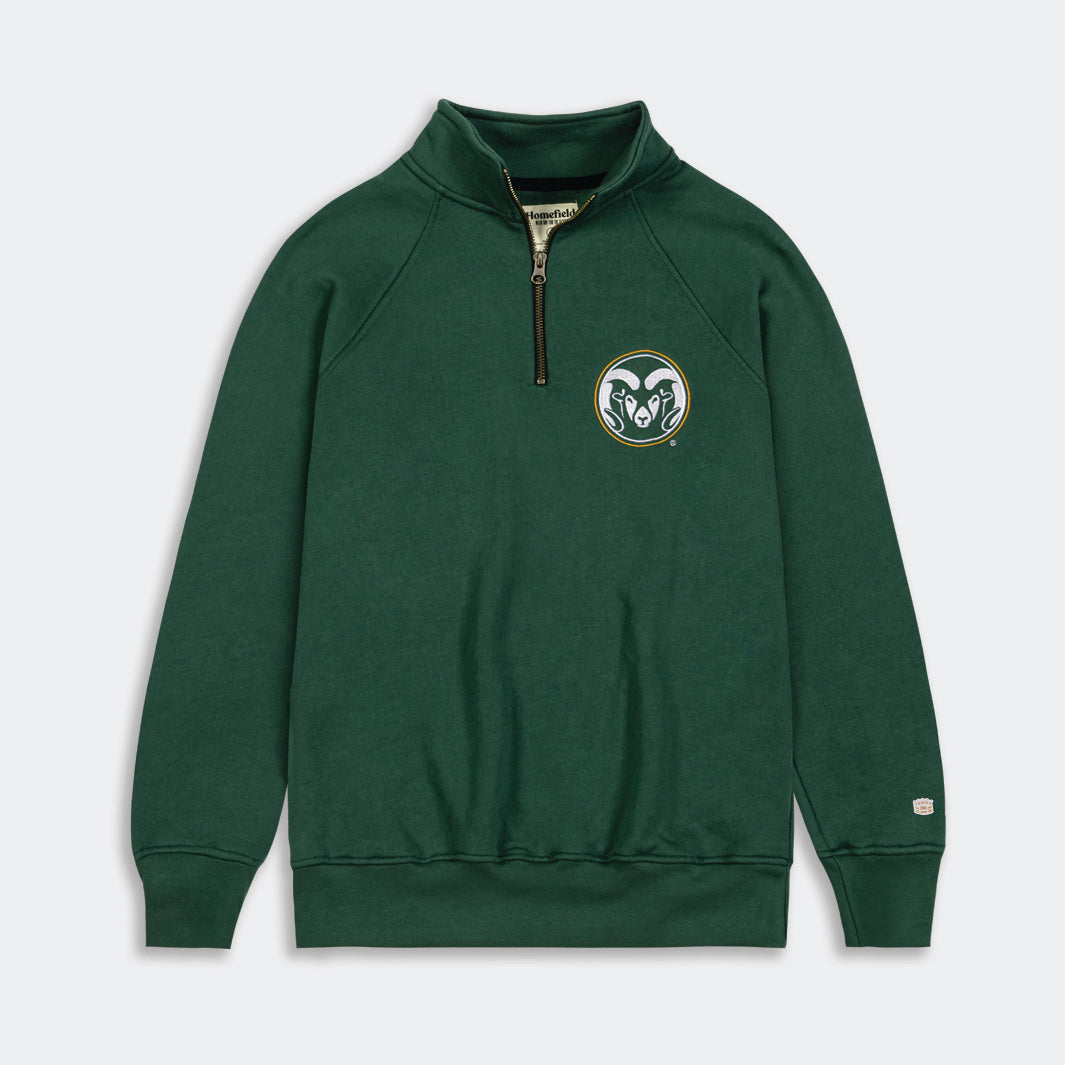 This Colorado State logo has seen a few color variations over the decades since its debut in 1993. When set on this embroidered quarter zip, it most resembles the version of the logo that debuted in 2015.