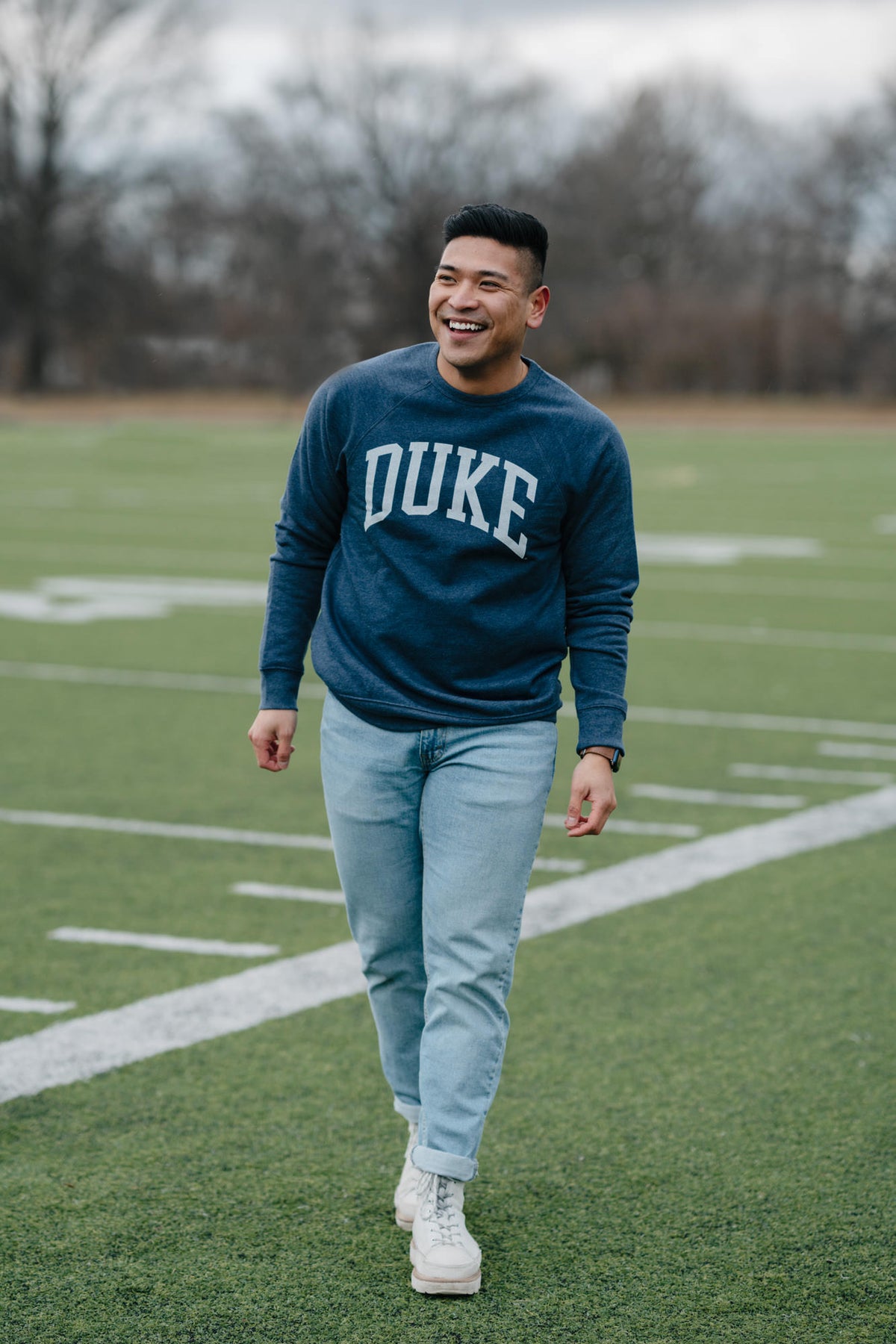 One of the anchors of North Carolina's famous Triangle, Duke University is one of three major universities in the region known for both research and athletic feats. The rivalries there are intense among Blue Devils, UNC and NC State fans. We don't take sides, but you can (and should!) make your statement with a classic Duke look.