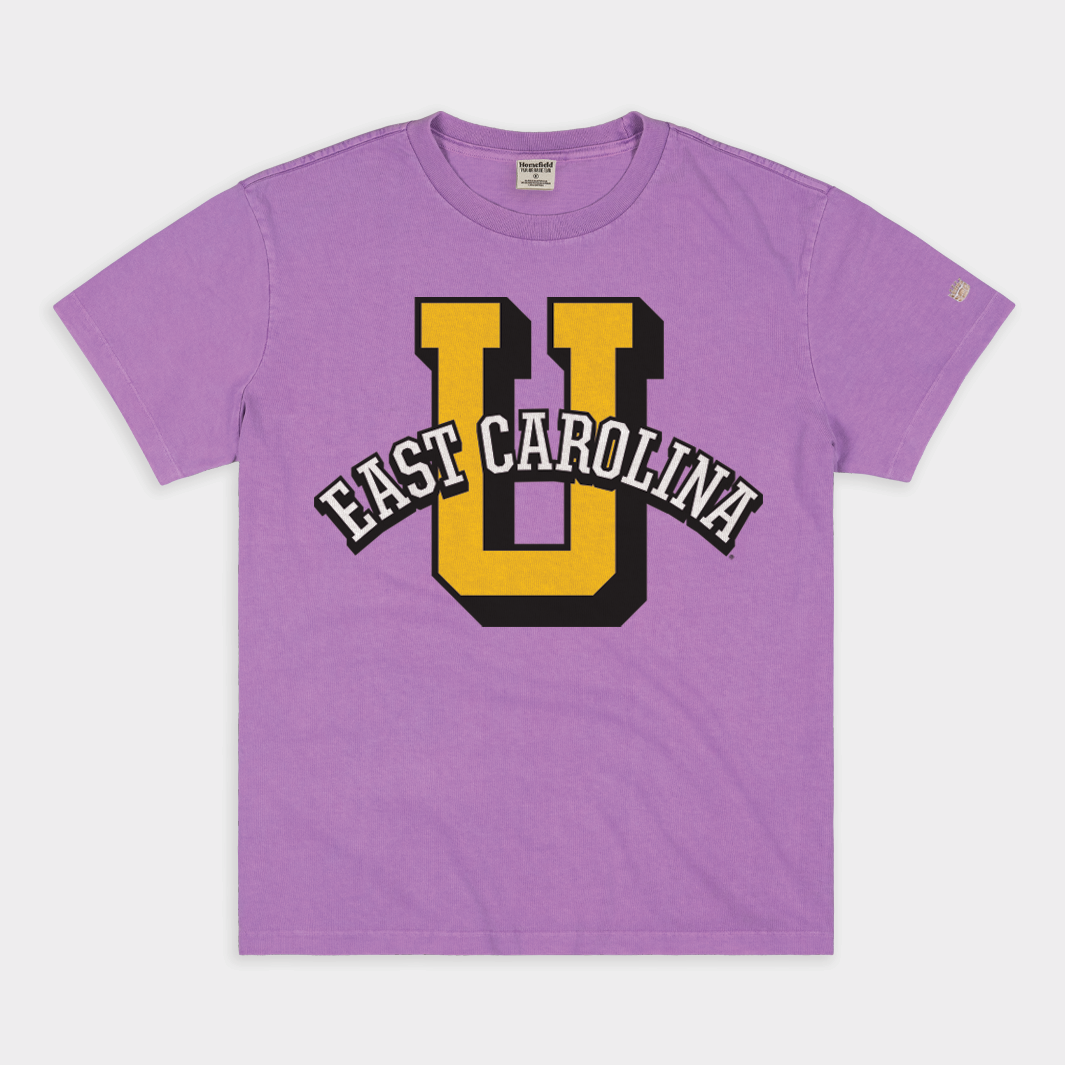 With humble origins as a teachers’ college, East Carolina grew rapidly as a higher education institution throughout the 1900s. The East Carolina Teachers’ Training School would evolve several times, officially becoming East Carolina University in 1967. This midcentury, retro ECU design is an era-appropriate tribute to the Pirates.