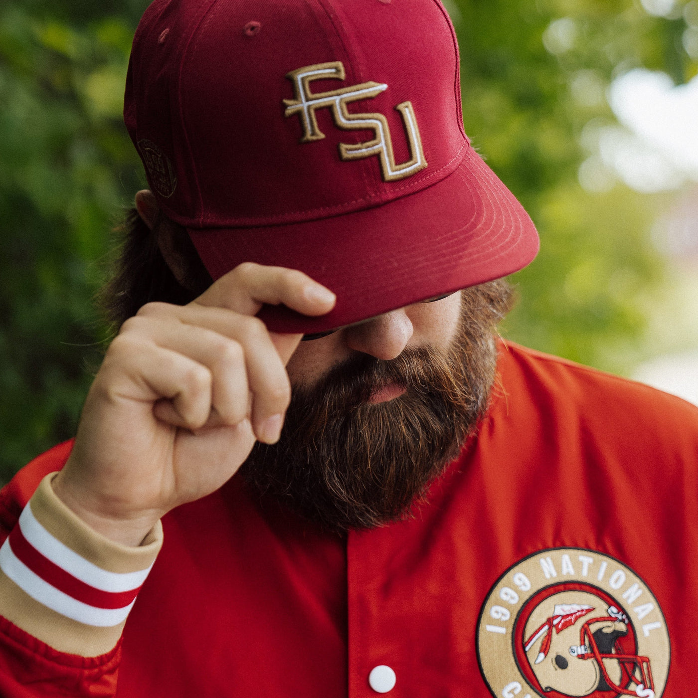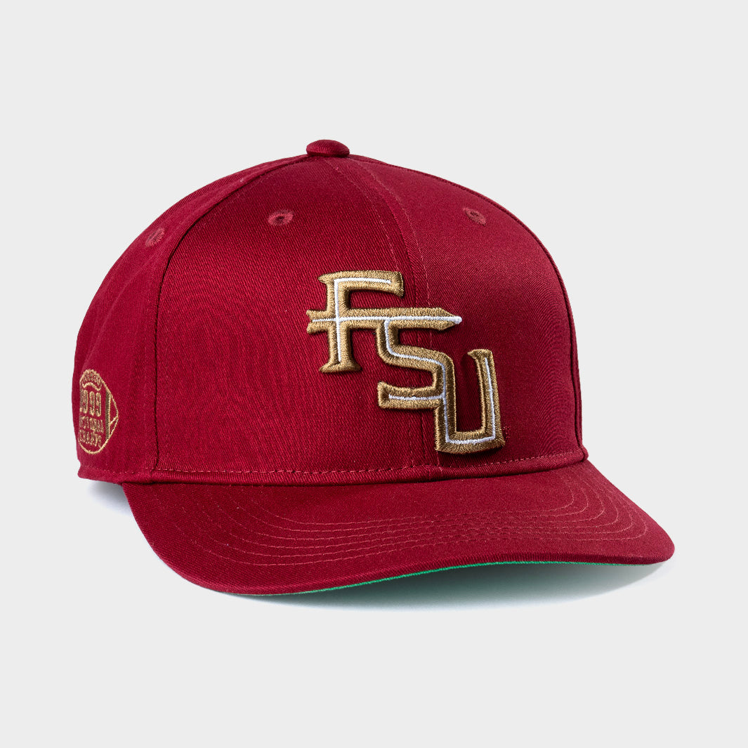 During the 1999 season, Florida State became the first team in NCAA history to go “wire-to-wire,” maintaining their No. 1 ranking from the preseason through bowl season in every poll. With Bobby Bowden at the helm and an incredible roster – including eventual Heisman-winner Chris Weinke and star receiver Peter Warrick – the Seminoles went 12-0 and defeated Virginia Tech in the Sugar Bowl to win their national championship. This snapback features a classic FSU wordmark with a side logo commemorating the Seminoles' achievement in '99. Brought to you in partnership with College Vault.