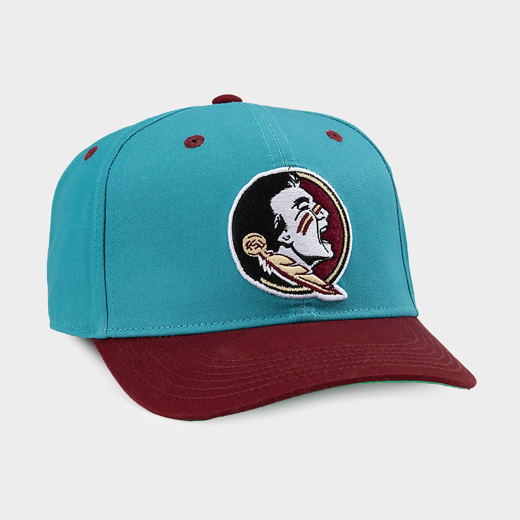 We designed a new, turquoise snapback hat to honor Florida State's Seminole Heritage series. Paying respect to the Seminole tribe of Florida, the color turquoise often represents unity and fellowship in many indigenous American cultures. As Florida State does with its Heritage Night uniforms, we added garnet and gold accents to the hat, to tie all the elements together.