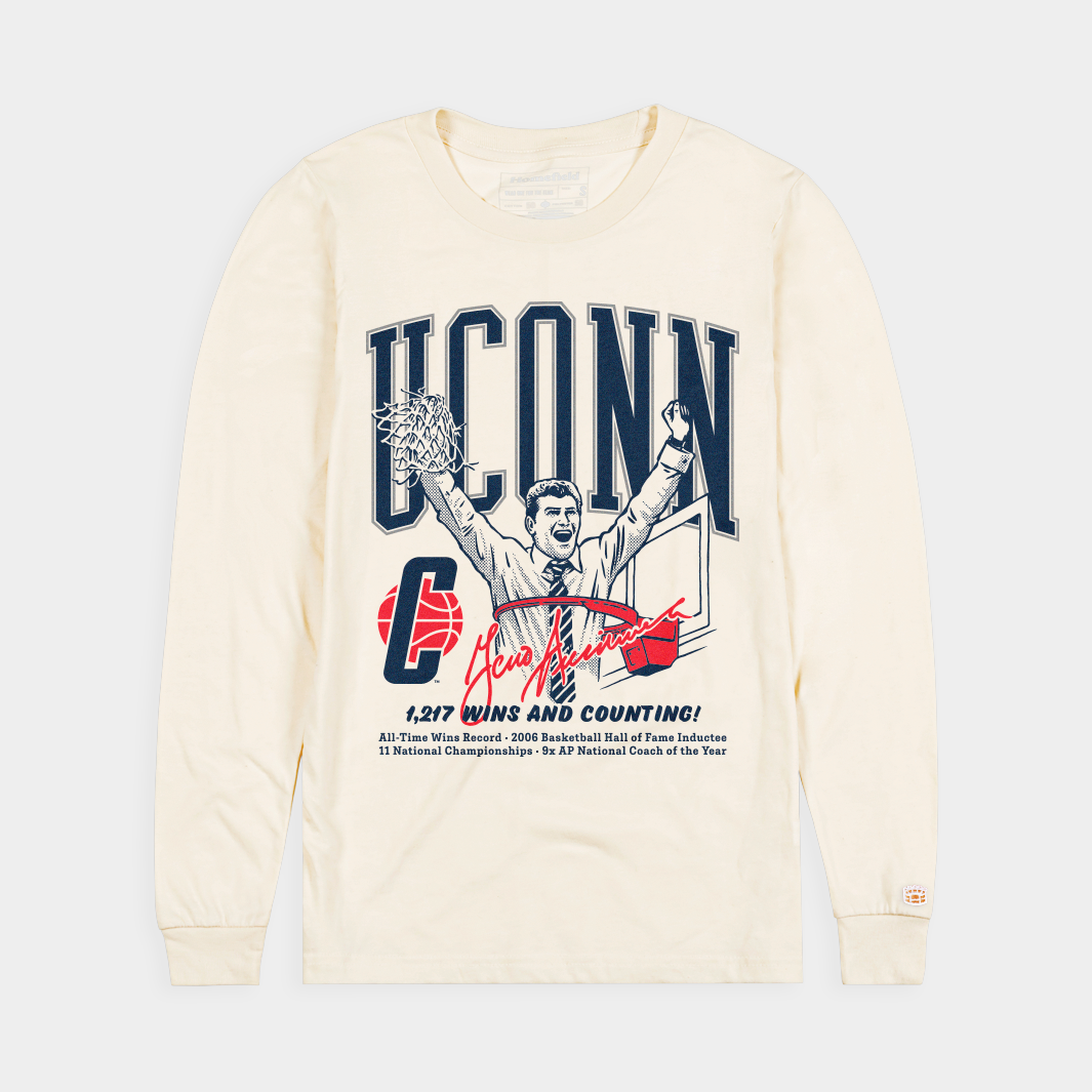 UConn head coach Geno Auriemma is officially the winningest coach in Division I basketball history. With win 1,217 against Fairleigh Dickinson, Auriemma surpassed Tara VanDerveer's previous record in front of a sold-out home crowd. This original illustration is our tribute to a titan of college basketball, as Geno Auriemma continues to build his legacy.