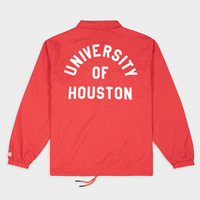 Through the late 1960s and '70s, football coaching staffs transitioned their sideline wardrobes from full suits and ties to light, workmen-style jackets; these coaches jackets were predecessors to the more spirited, uniformly branded looks we see on the sidelines today. Our take on a Houston coaches jacket matches era-appropriate typefaces and logos with the structured collar and boxy fit of a vintage jacket. Made with durable-yet-lightweight nylon, and high-quality snap plackets and drawcords, it's the perfect outer layer for a brisk Football Saturday night.