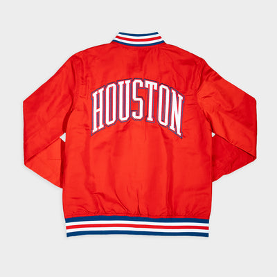 For this 1980s-inspired bomber jacket, we combined a classic, arched "Houston" mark and the interlocked UH monogram made famous by Texas' Tallest Fraternity, aka Phi Slama Jama. Known for their high-flying style of play (a stark, refreshing contrast from the style of basketball John Wooden coached at UCLA), Houston men's basketball captivated the nation in the early '80s.