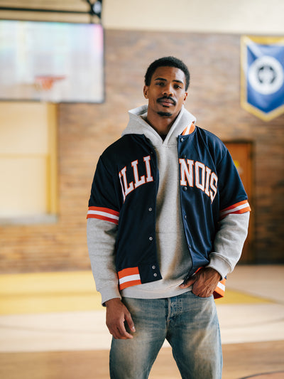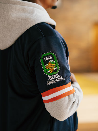 Often considered the most talented team in Illinois history, the 1988-89 men’s basketball team—known as the Flyin’ Illini—are still revered and beloved over three decades later. Known for their up-tempo style and high-scoring offense, the Flyin’ Illini captured the hearts of Illinois fans on their way to the Final Four, their first appearance in 37 years. We modeled this retro shooting shirt after their 1989 warmups, and incorporated a vintage 1989 Final Four logo on the sleeve. Brought to you in partnership with College Vault.
