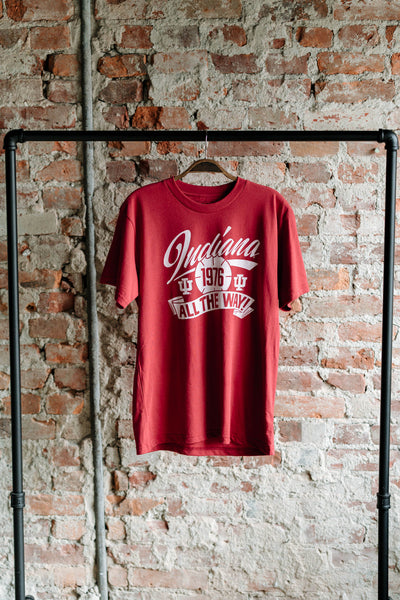 In IU’s long basketball history, they’ve gone "All the Way" to become National Champions five times. We dug through vintage Indiana marketing materials and fan-made posters from the 1970s to create our version of a rallying banner. To match the era, we tipped our caps to the undefeated 1976 men’s squad.