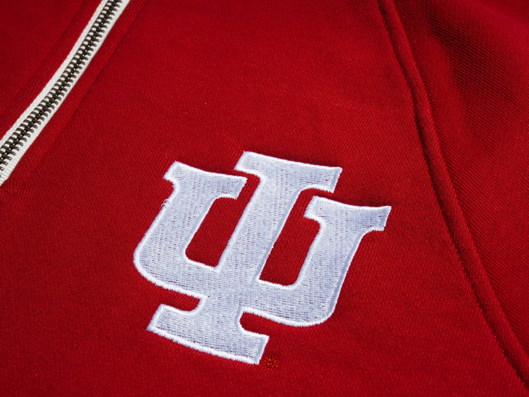 Indiana's "IU" trident monogram is instantly recognizable, no matter how it's drawn up. We opted for a classic, vintage trident for this embroidered quarter zip, but it's been stylized a variety of ways-- including with drop-shadow accents, or as the italicized "flying IU" logo of 1983.