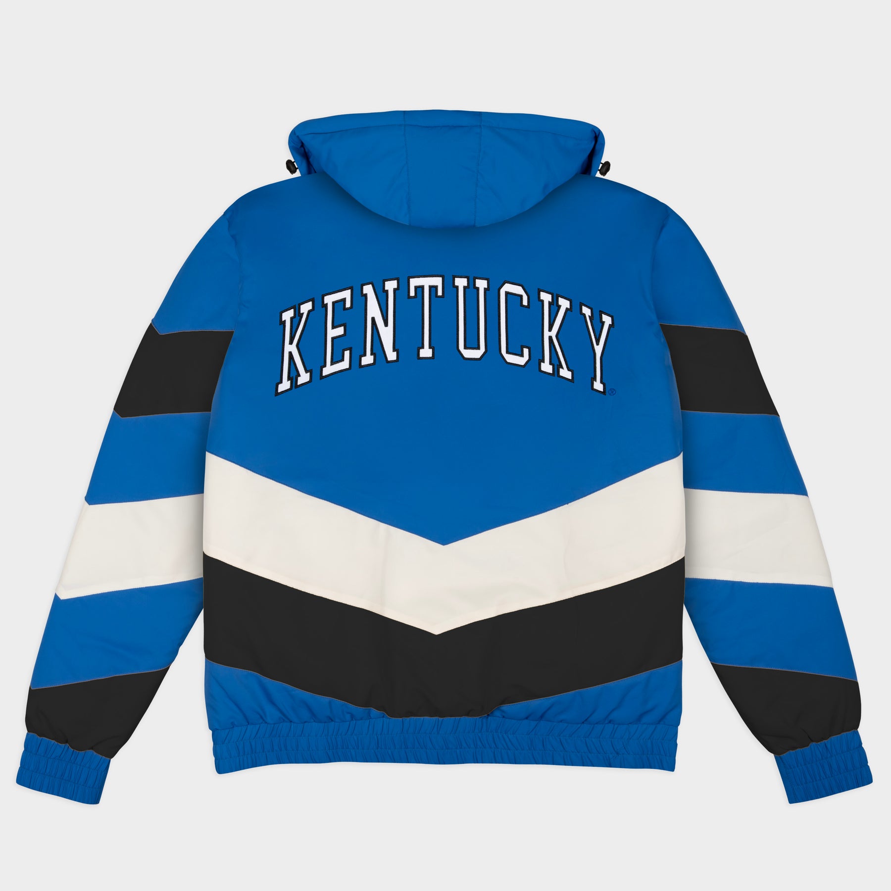 Change the winter jacket game with the Kentucky Gamebreaker Jacket. Inspired by the bold, maximal sportstyle jackets of the 1990s, each jacket is designed with a high neck and removable hood to withstand whatever elements the day throws at you. The chevron stripes and classic, vintage logos on the chest and back paint the quintessential game day fashion picture.