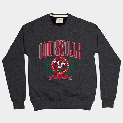 Louisville overhauled both its academic and athletic logos in the 1980’s, giving the fighting Cardinal his signature look around the same time the university refined its academic branding. This vintage recreation marries academics and athletics, with a modified version of a UofL crest.