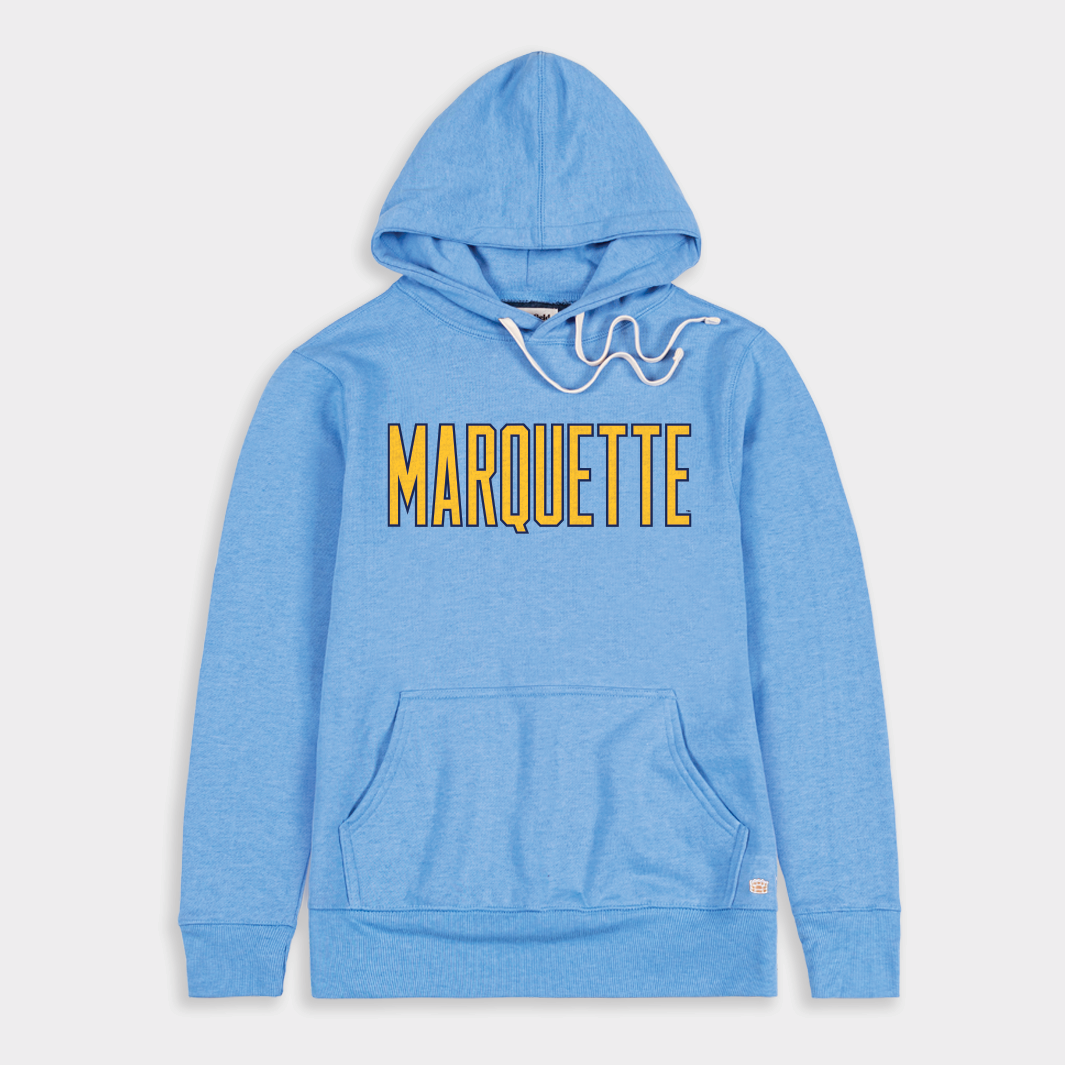 If this retro “Marquette” looks familiar, you’d be right – in fact, it’s a national championship-winning style. The Marquette men’s basketball team wore this type treatment on their jerseys the season they won the 1977 NCAA Tournament.