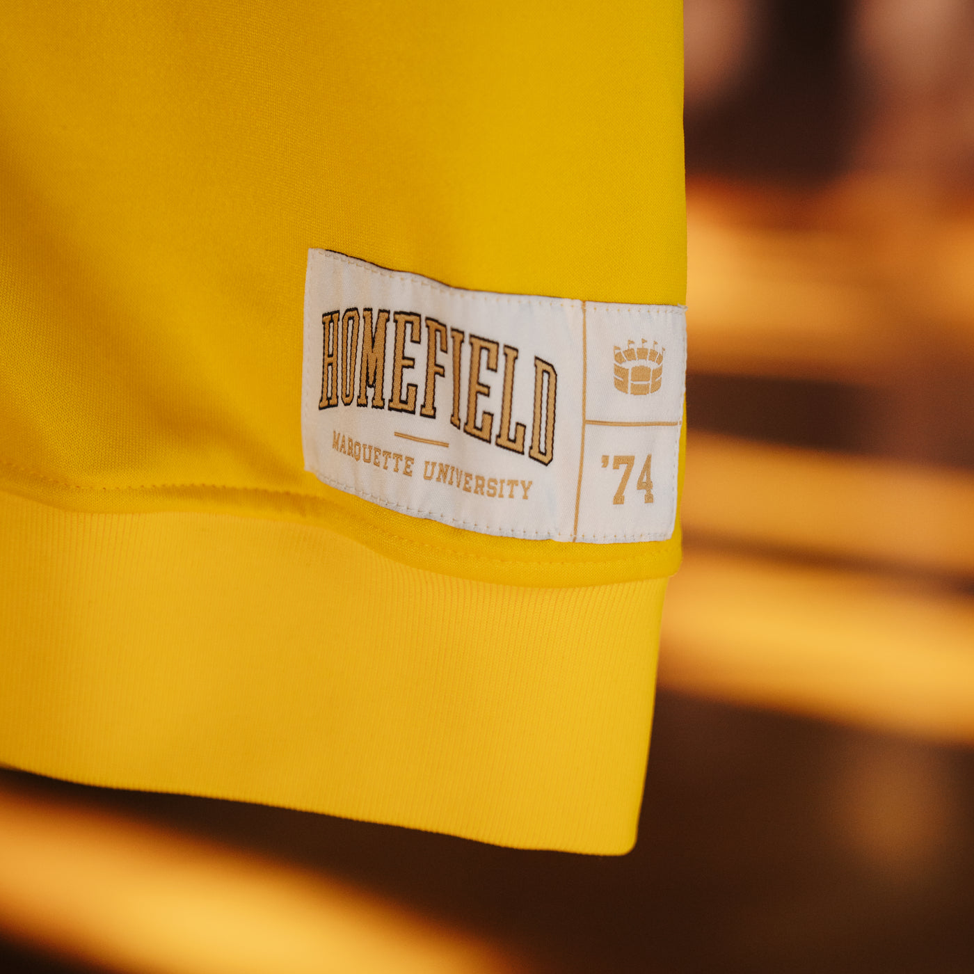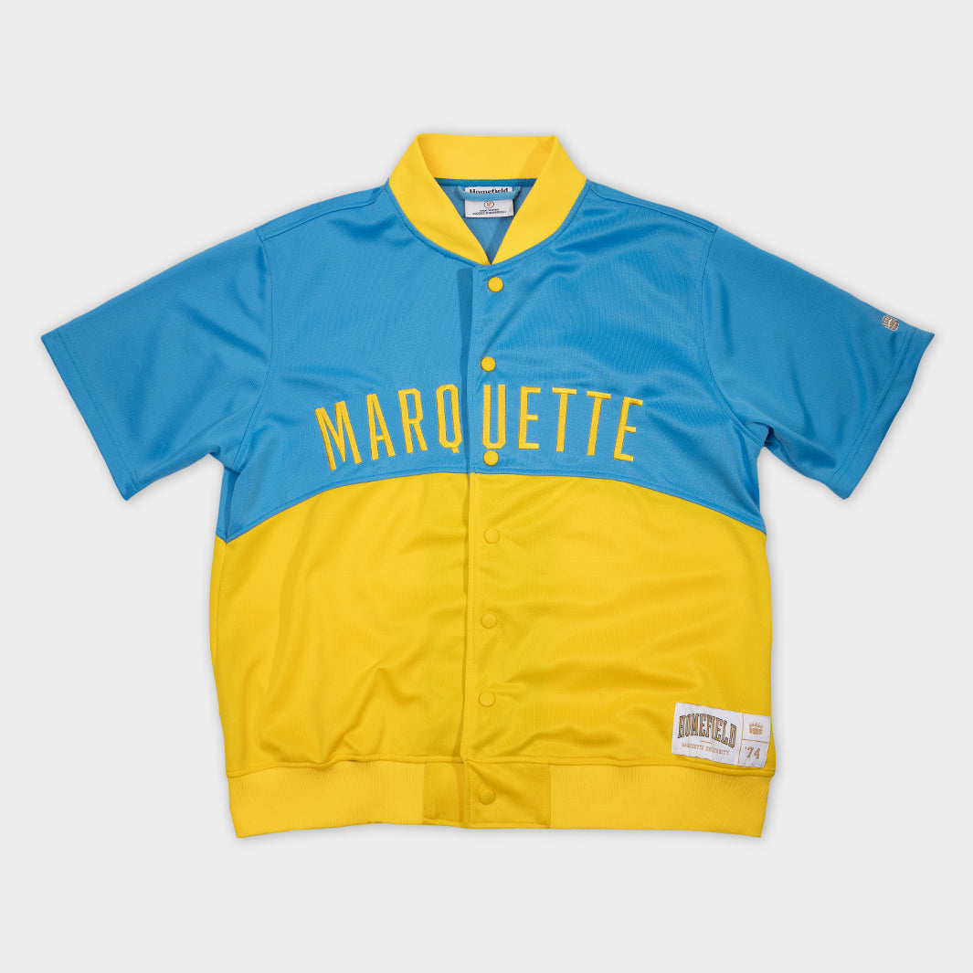 While these specific Marquette shooting shirts reference their 1974 warmups they wore when they were NCAA tournament runners-up, there’s so much about Golden Eagles basketball that we love. The Golden Eagles won a national championship in 1977, and had a strong resurgence in the early 2000s, when head coach Tom Crean and star Dwayne Wade helped lead Marquette to the Final Four in 2003.