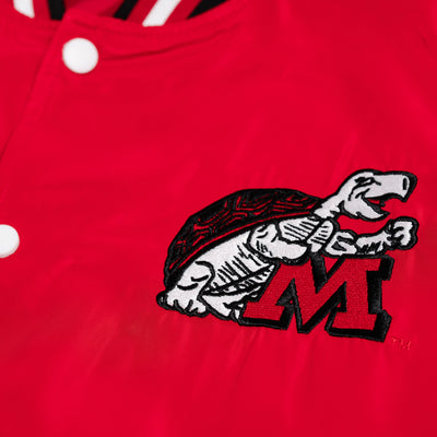 Few retro Maryland logos are as beloved as the throwback Testudo and script "Terps." Maryland’s football team first used the beloved script on their helmets in 1982; the vintage terrapin was used around the same time, from 1970 to 1983. Both make regular comebacks due to their popularity, and we're excited to see them reemerge yet again -- this time, on a vintage-inspired bomber jacket.
