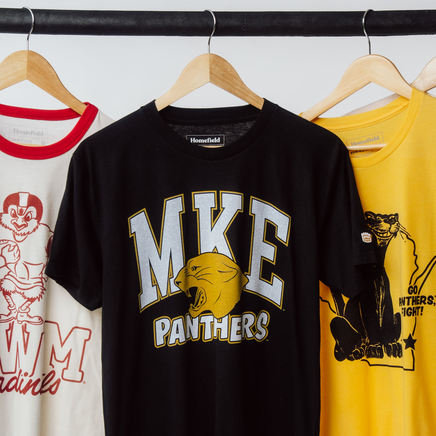 In 1965, UWM graduate student Jim Cheski entered the contest to design the school’s new mascot, which the student body voted to change to the Panthers. He designed both the panther head featured on this retro-inspired hoodie and a leaping panther logo for the school. Aside from the distinction of bringing Wisconsin-Milwaukee’s mascot to life, he also won $100.