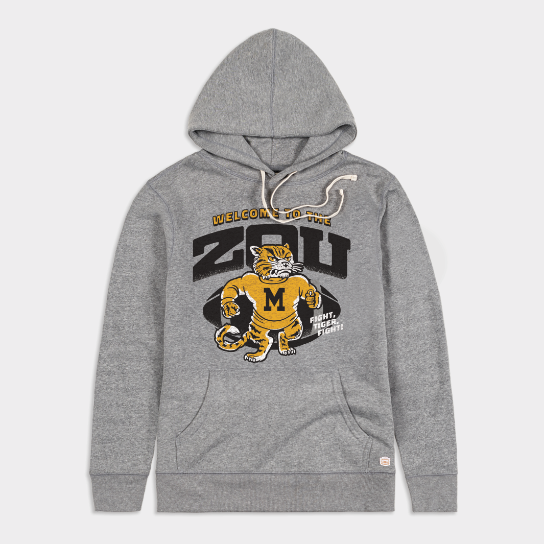 While the Tigers fight for old Mizzou, their most dedicated fans are found right behind them in The Zou. The official student section of Missouri Athletics, The Zou offers students the opportunity to be on the fandom front lines, forging friendships and memories throughout the season. For our nod to Missouri student life, we incorporated this serious-yet-studious tiger, which we originally found on a vintage pennant.