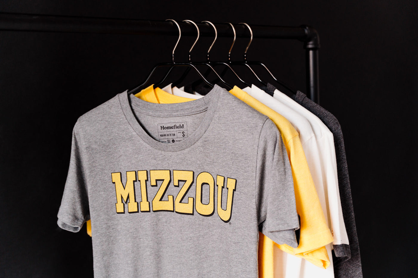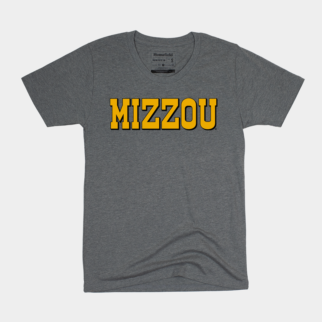 We found this “Mizzou” in this unique block type on the head of a Marching Mizzou bass drum. The marching band, also known as The Big “M” of the Midwest, is Missouri’s largest student organization. The Marching Mizzou has humble origins as a 12-member cadet band, but now has students from nearly every major in its ranks. They added majorettes known as the Golden Girls in 1957, named for their gold-sequined uniforms.