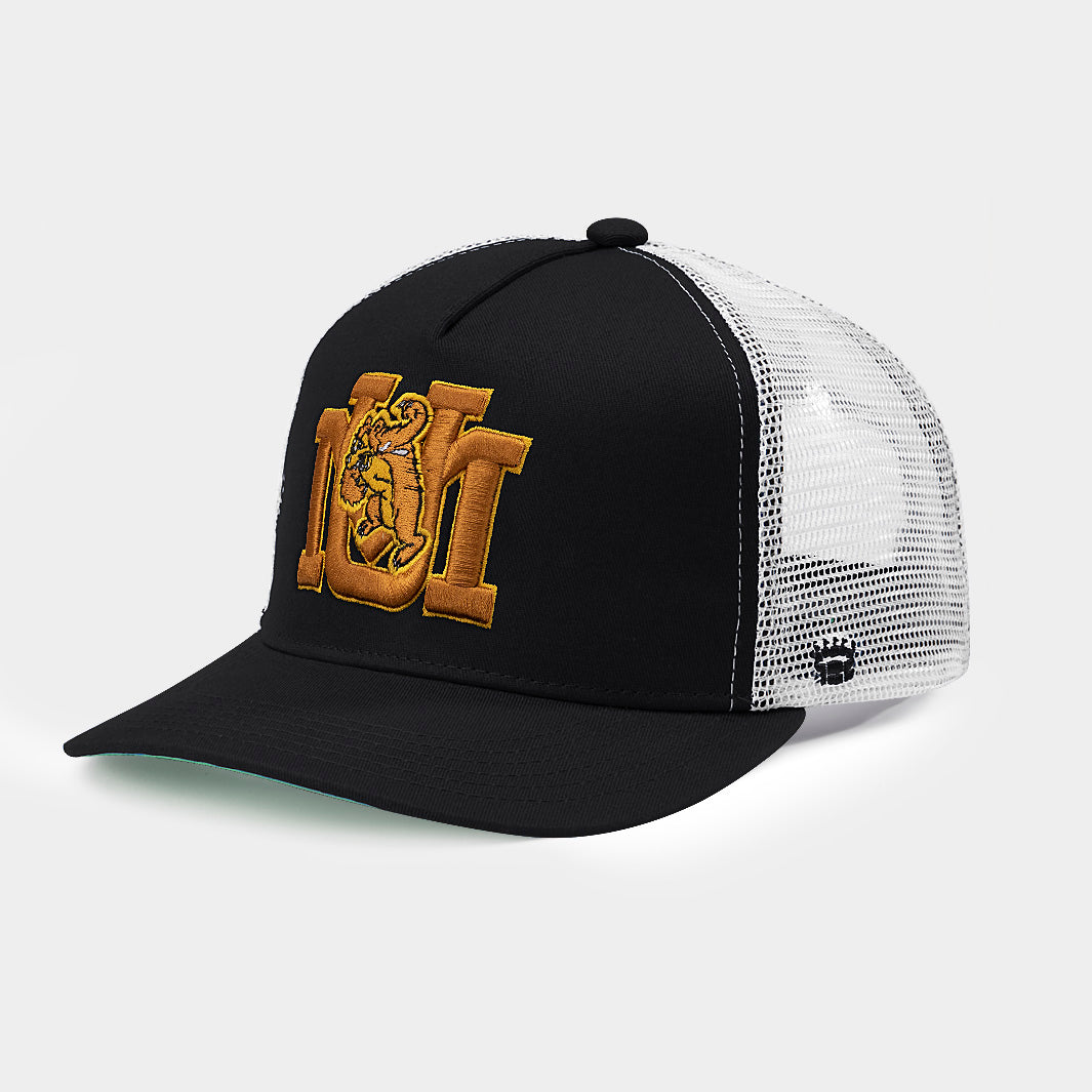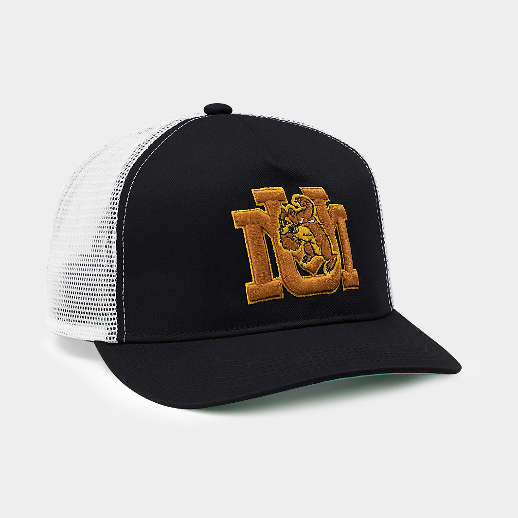 This fan favorite slobbering bear mascot hails from 1966-1987, when it was used to represent Montana and its athletic teams. For this retro trucker hat, we paired the mascot with a classic Montana monogram.